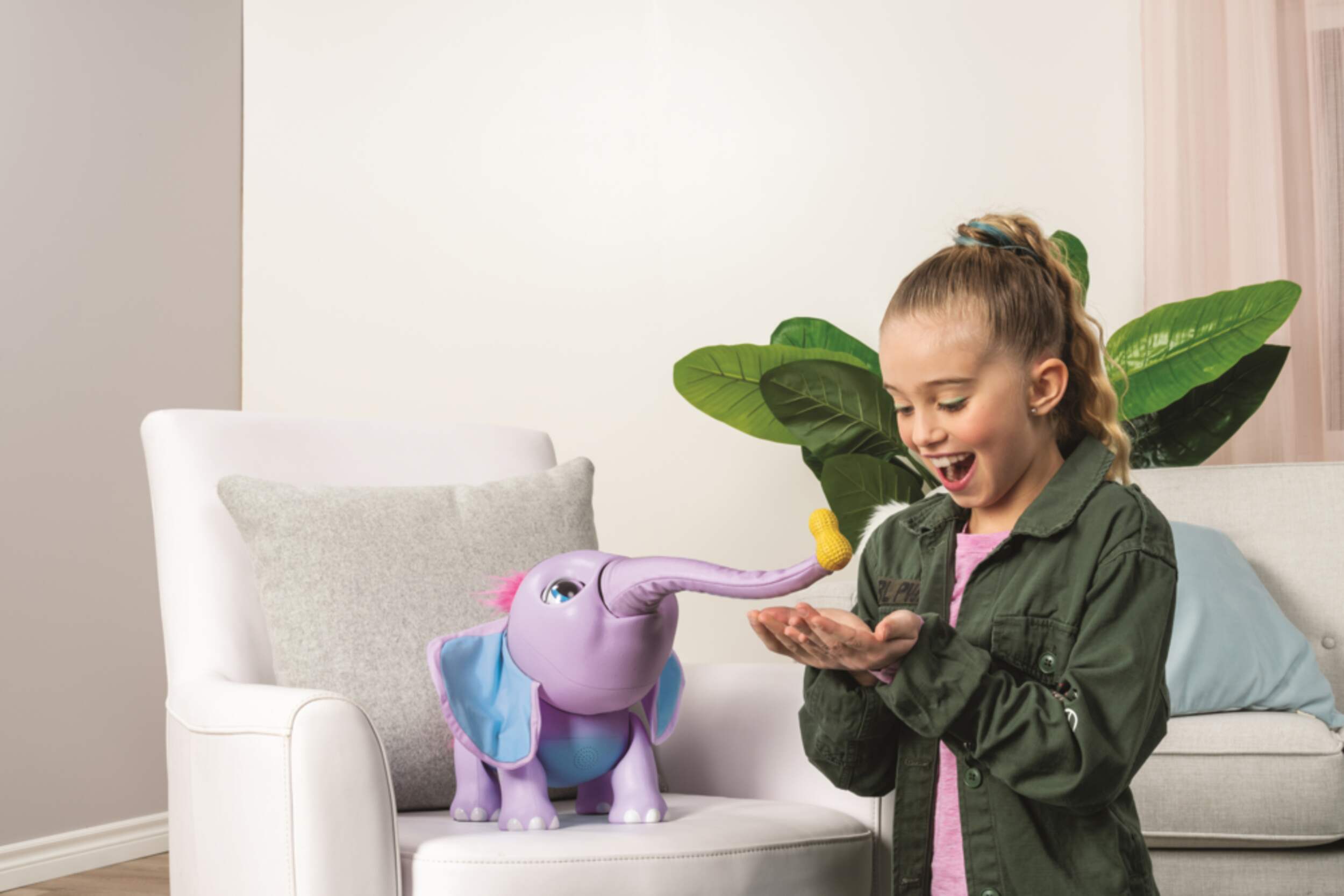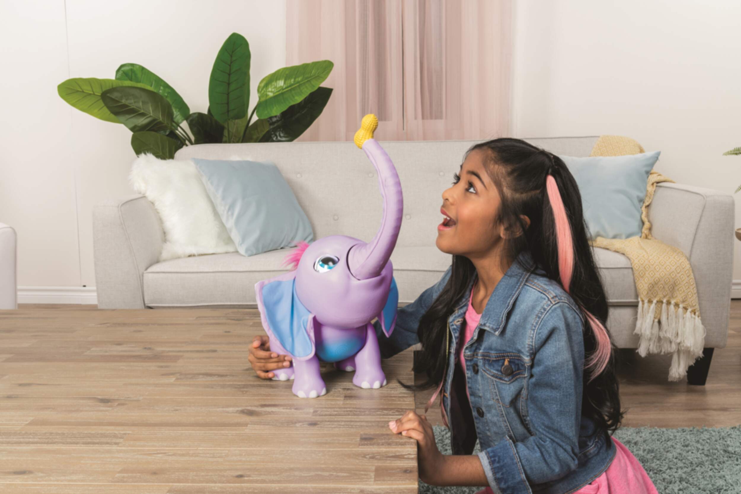 INTERACTIVE ACCESSORIES: Feed Juno her peanut or use it to teach her tricks like how to dance and trumpet with her trunk! Give Juno her toy mouse to play games like peek-a-boo and build a tune! Discover more of Juno’s special games and tricks as you play together!