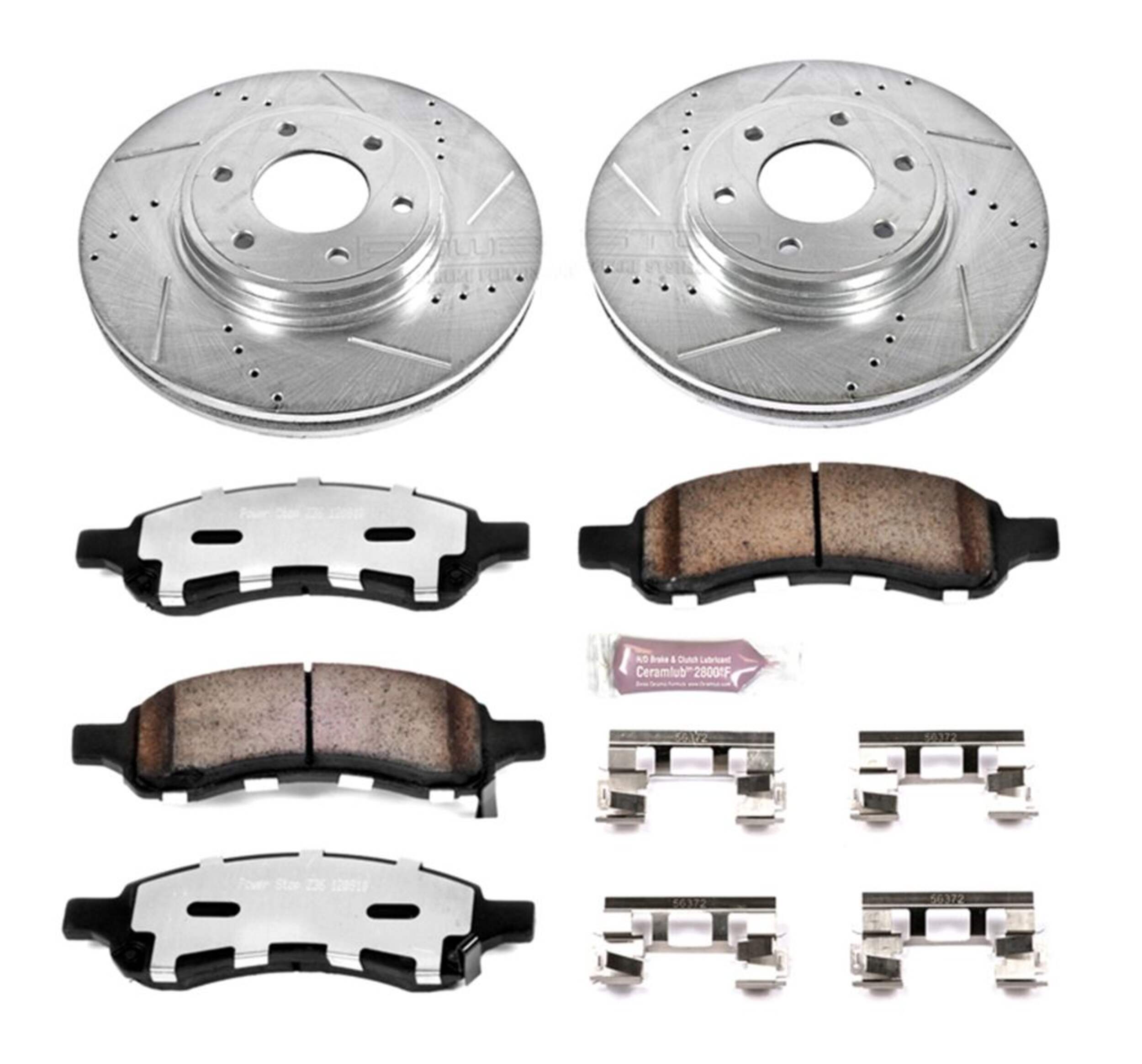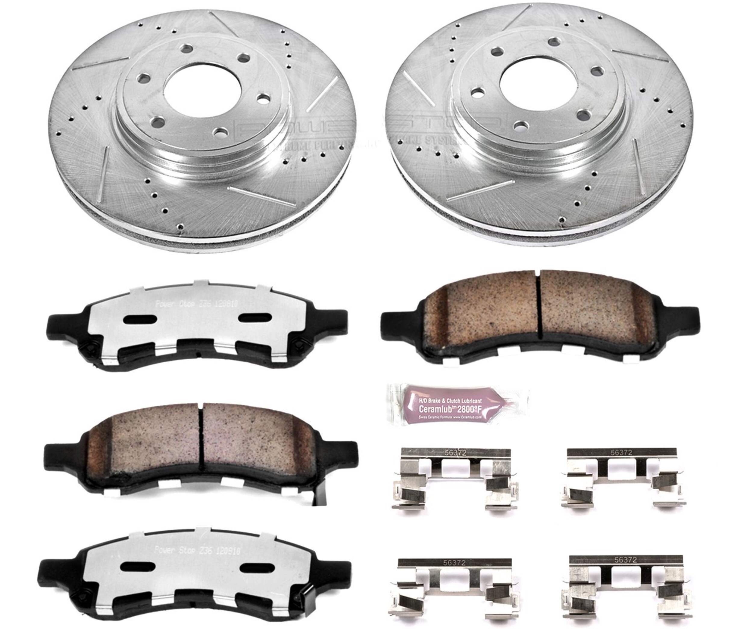 The Power Stop Z36 Truck & Tow Brake Kit provides extreme braking performance, specifically designed for trucks or 4x4s. The Z36 Carbon-Fiber Ceramic formula ensures dust-free braking, while premium stainless steel shims allow superior heat dissipation and virtually noise-free braking. The kit includes drilled and slotted performance rotors for optimal cooling, plated in zinc (excluding hub assemblies) for maximum rust protection. A ceramic brake lubricant and a premium stainless steel hardware kit are also included for your convenience.