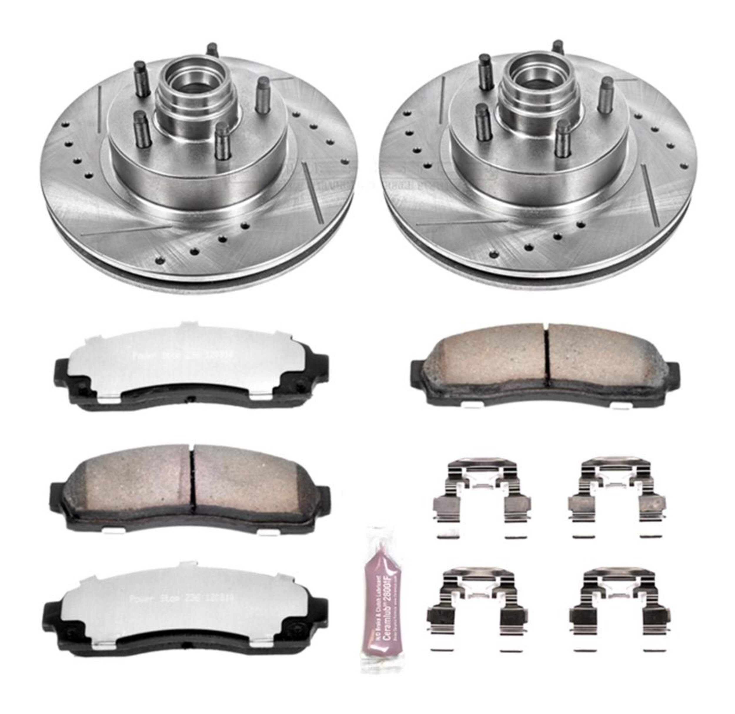 The Power Stop Z36 Truck & Tow Brake Kit provides extreme braking performance, specifically designed for trucks or 4x4s. The Z36 Carbon-Fiber Ceramic formula ensures dust-free braking, while premium stainless steel shims allow superior heat dissipation and virtually noise-free braking. The kit includes drilled and slotted performance rotors for optimal cooling, plated in zinc (excluding hub assemblies) for maximum rust protection. A ceramic brake lubricant and a premium stainless steel hardware kit are also included for your convenience.