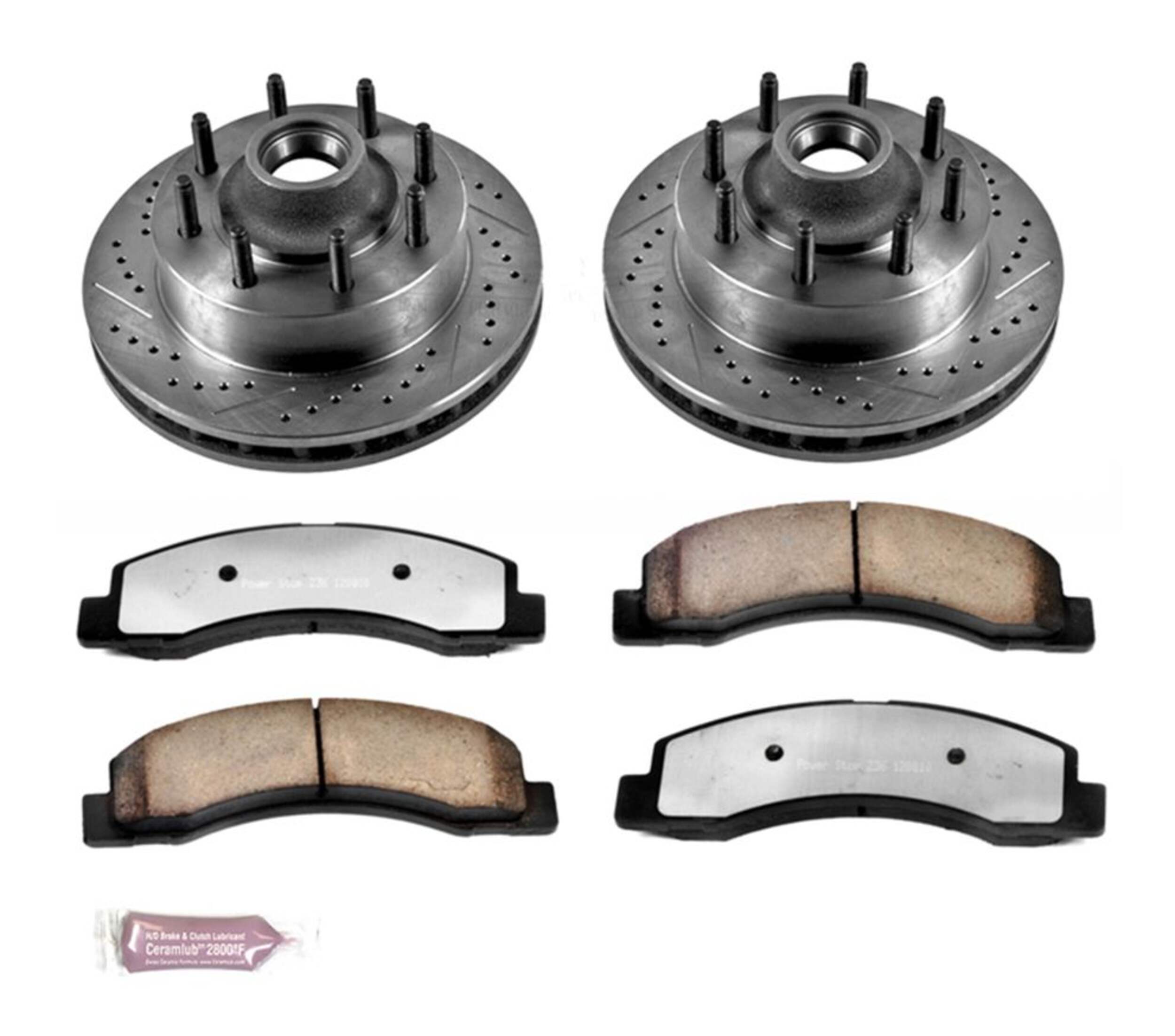 The Power Stop Z36 Truck & Tow Brake Kit provides extreme braking performance, specifically designed for trucks or 4x4s. The Z36 Carbon-Fiber Ceramic formula ensures dust-free braking, while premium stainless steel shims allow superior heat dissipation and virtually noise-free braking. The kit includes drilled and slotted performance rotors for optimal cooling, plated in zinc (excluding hub assemblies) for maximum rust protection. A ceramic brake lubricant and a premium stainless steel hardware kit are also included for your convenience.