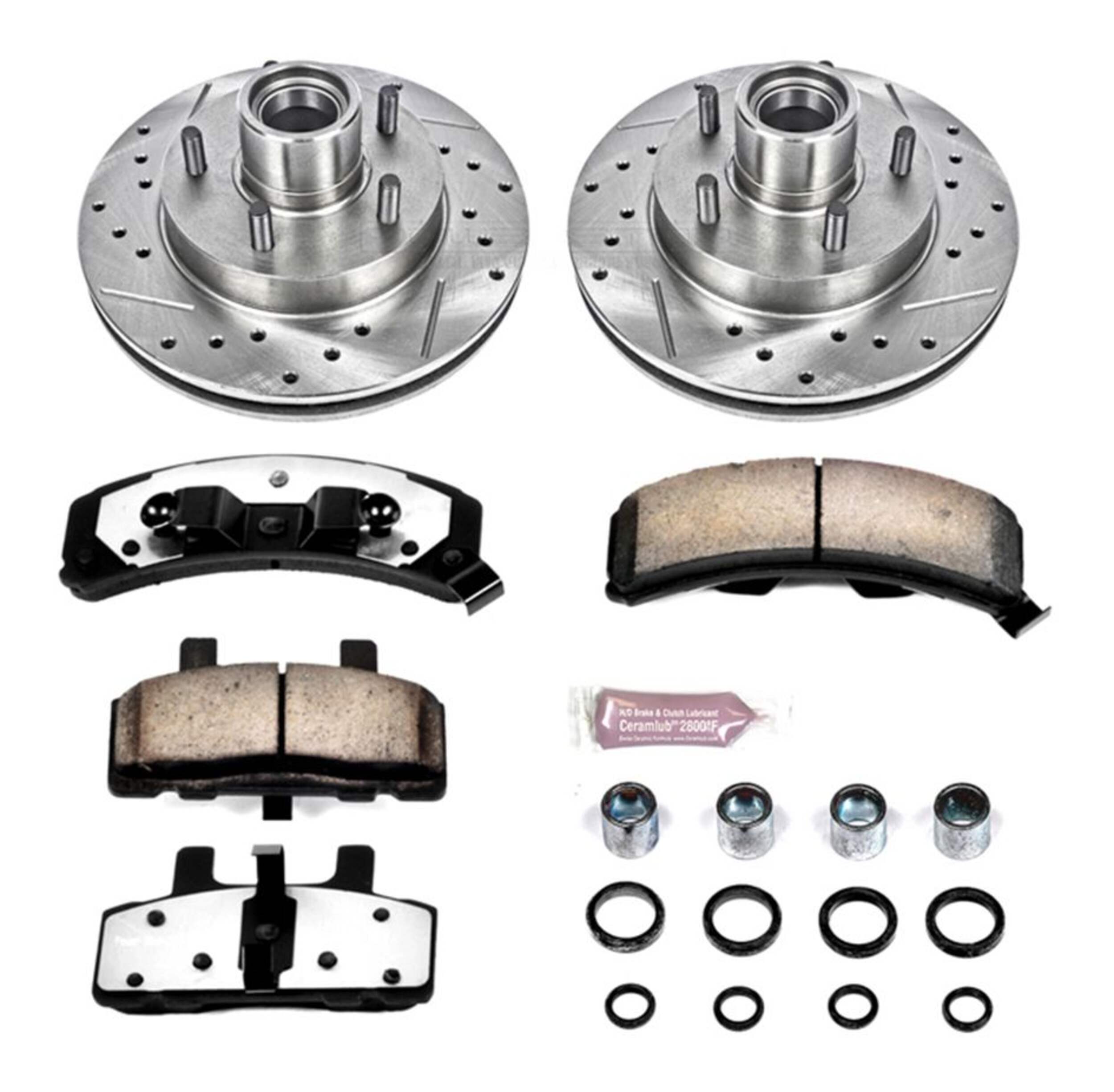 The Power Stop Z36 Truck & Tow Brake Kit provides extreme braking performance, specifically designed for trucks or 4x4s. The Z36 Carbon-Fiber Ceramic formula ensures dust-free braking, while premium stainless steel shims allow superior heat dissipation and virtually noise-free braking. The kit includes drilled and slotted performance rotors for optimal cooling, plated in zinc (excluding hub assemblies) for maximum rust protection. A ceramic brake lubricant and a premium stainless steel hardware kit are also included for your convenience.