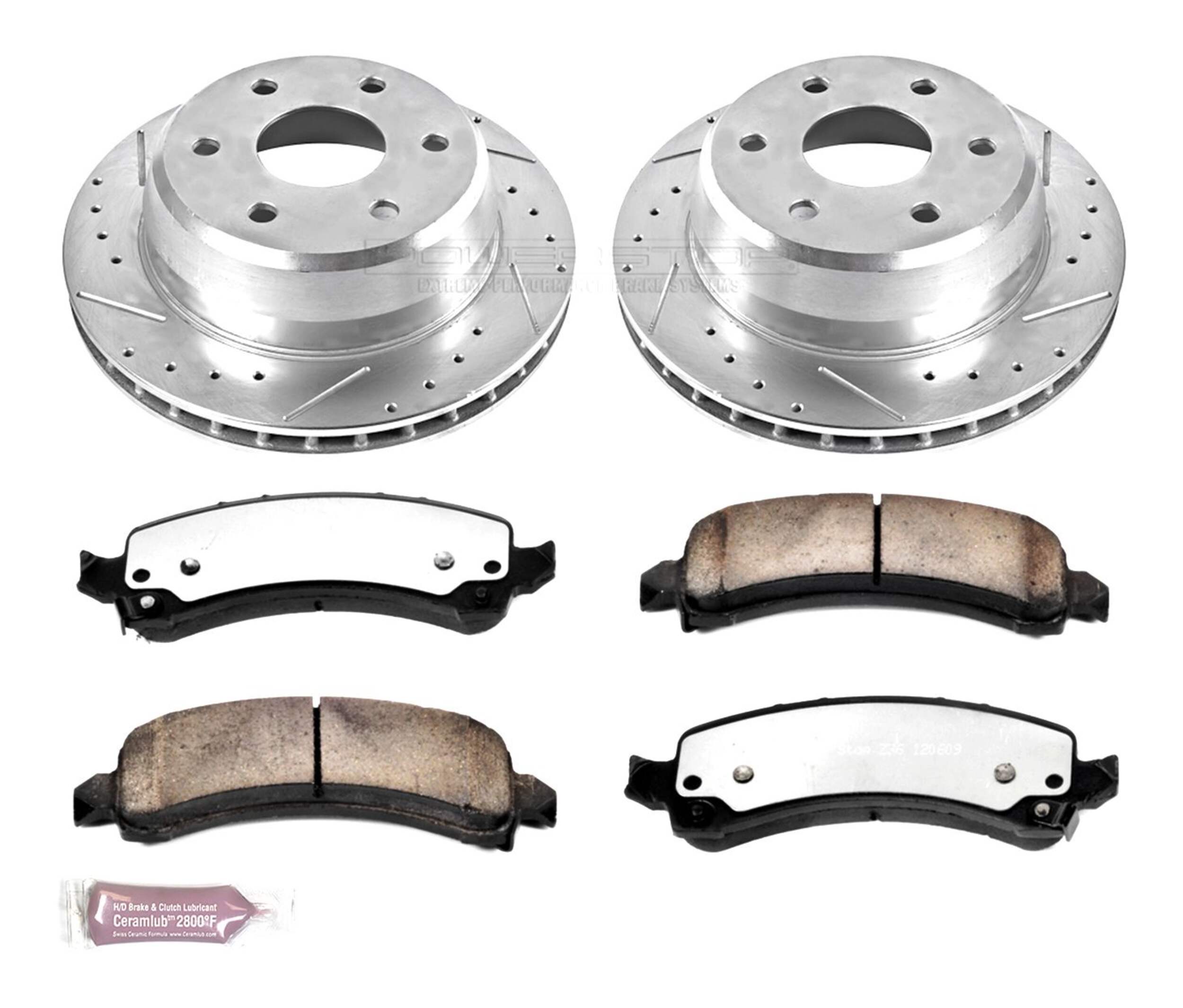 The Power Stop Z36 Truck & Tow Brake Kit provides extreme braking performance, specifically designed for trucks or 4x4s. The Z36 Carbon-Fiber Ceramic formula ensures dust-free braking, while premium stainless steel shims allow superior heat dissipation and virtually noise-free braking. The kit includes drilled and slotted performance rotors for optimal cooling, plated in zinc (excluding hub assemblies) for maximum rust protection. A ceramic brake lubricant and a premium stainless steel hardware kit are also included for your convenience.