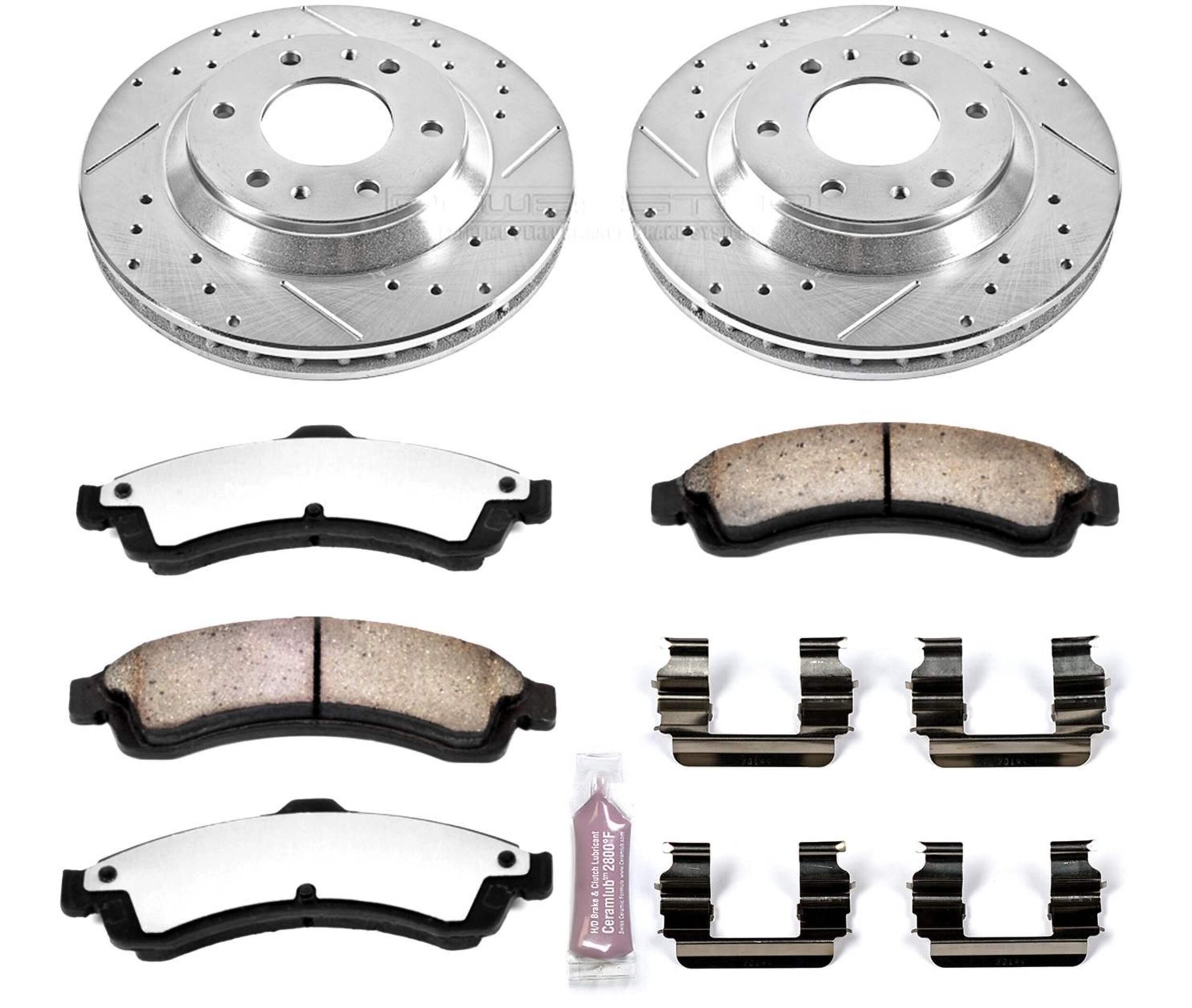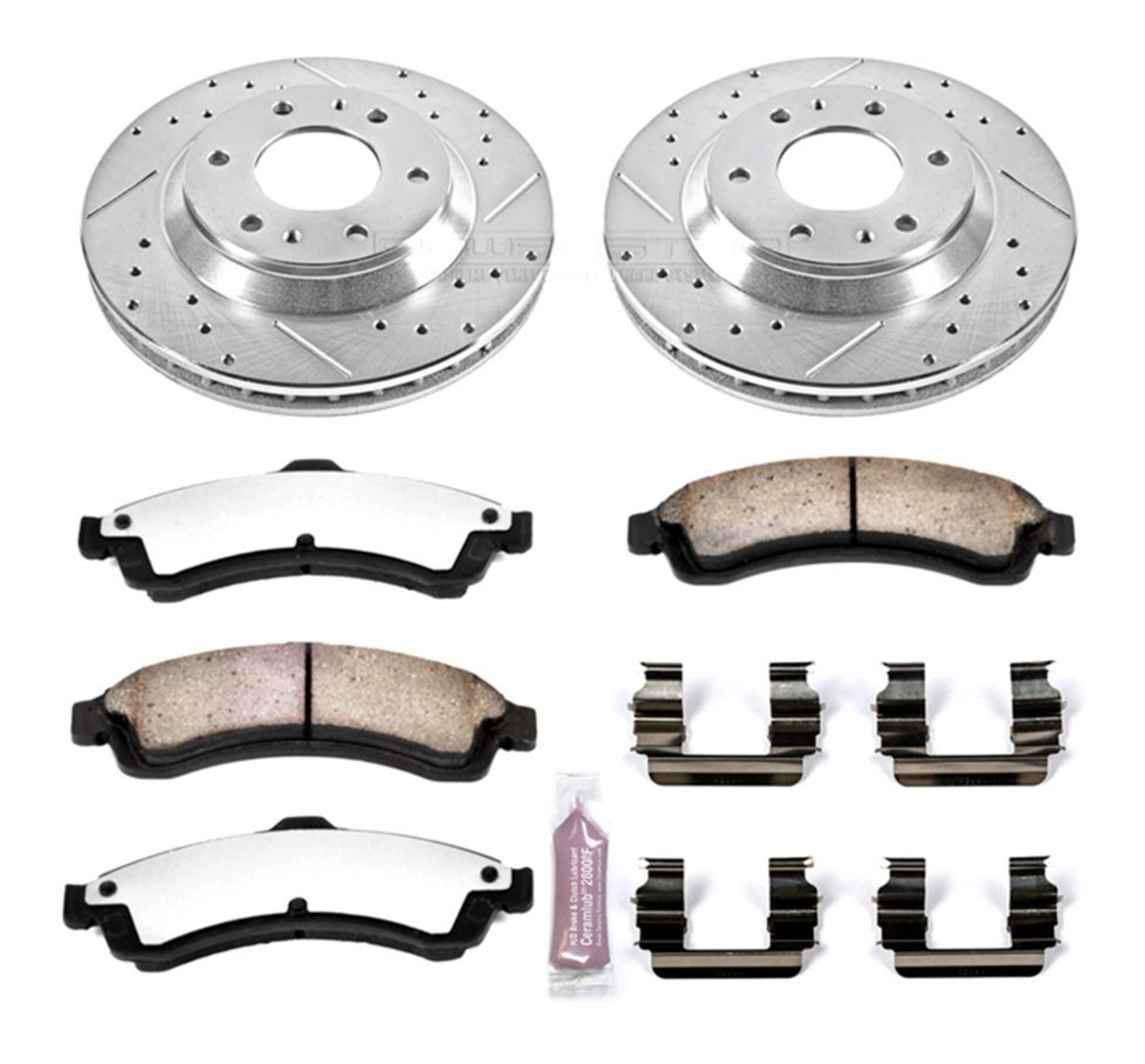 The Power Stop Z36 Truck & Tow Brake Kit provides extreme braking performance, specifically designed for trucks or 4x4s. The Z36 Carbon-Fiber Ceramic formula ensures dust-free braking, while premium stainless steel shims allow superior heat dissipation and virtually noise-free braking. The kit includes drilled and slotted performance rotors for optimal cooling, plated in zinc (excluding hub assemblies) for maximum rust protection. A ceramic brake lubricant and a premium stainless steel hardware kit are also included for your convenience.