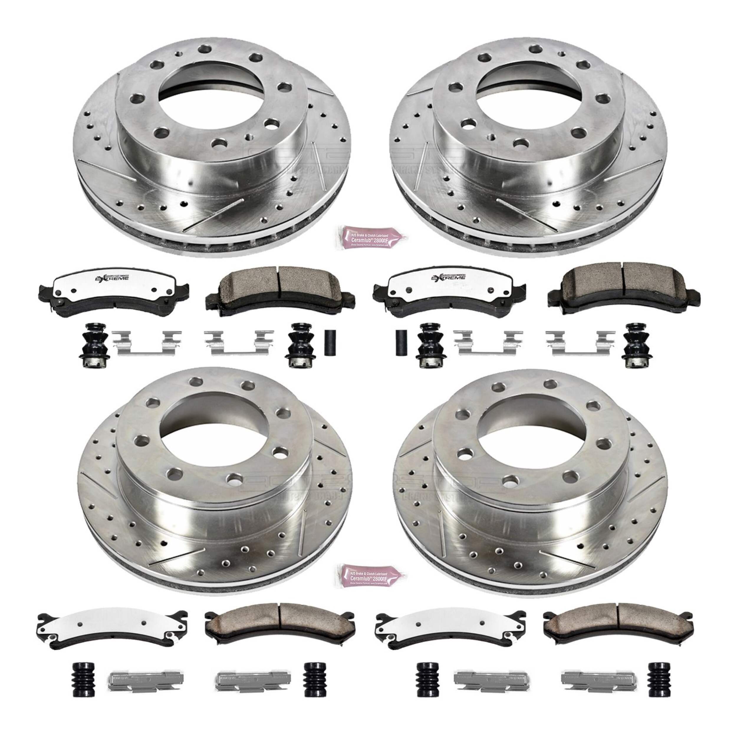 The Power Stop Z36 Truck & Tow Brake Kit provides extreme braking performance, specifically designed for trucks or 4x4s. The Z36 Carbon-Fiber Ceramic formula ensures dust-free braking, while premium stainless steel shims allow superior heat dissipation and virtually noise-free braking. The kit includes drilled and slotted performance rotors for optimal cooling, plated in zinc (excluding hub assemblies) for maximum rust protection. A ceramic brake lubricant and a premium stainless steel hardware kit are also included for your convenience.