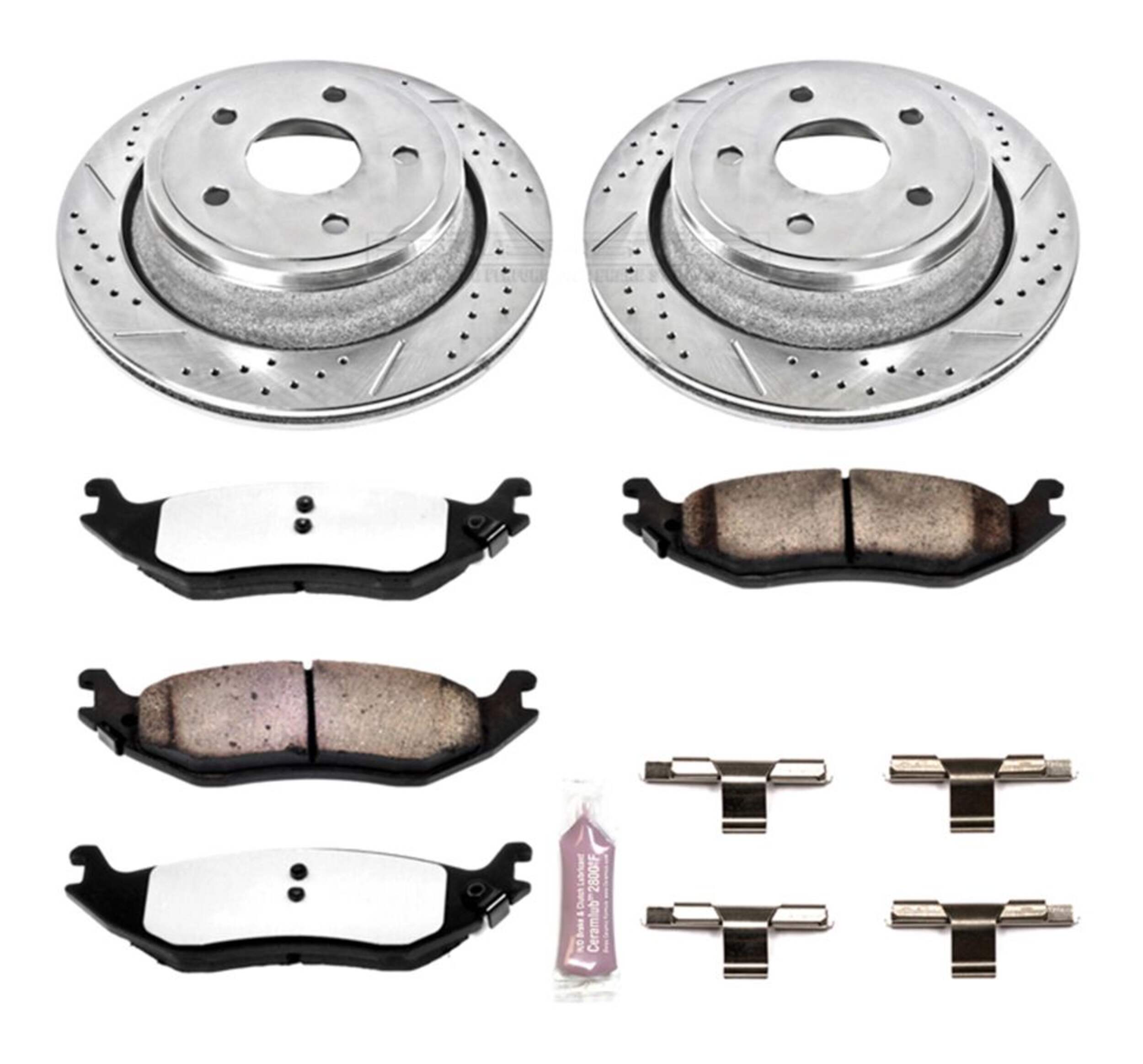The Power Stop Z36 Truck & Tow Brake Kit provides extreme braking performance, specifically designed for trucks or 4x4s. The Z36 Carbon-Fiber Ceramic formula ensures dust-free braking, while premium stainless steel shims allow superior heat dissipation and virtually noise-free braking. The kit includes drilled and slotted performance rotors for optimal cooling, plated in zinc (excluding hub assemblies) for maximum rust protection. A ceramic brake lubricant and a premium stainless steel hardware kit are also included for your convenience.