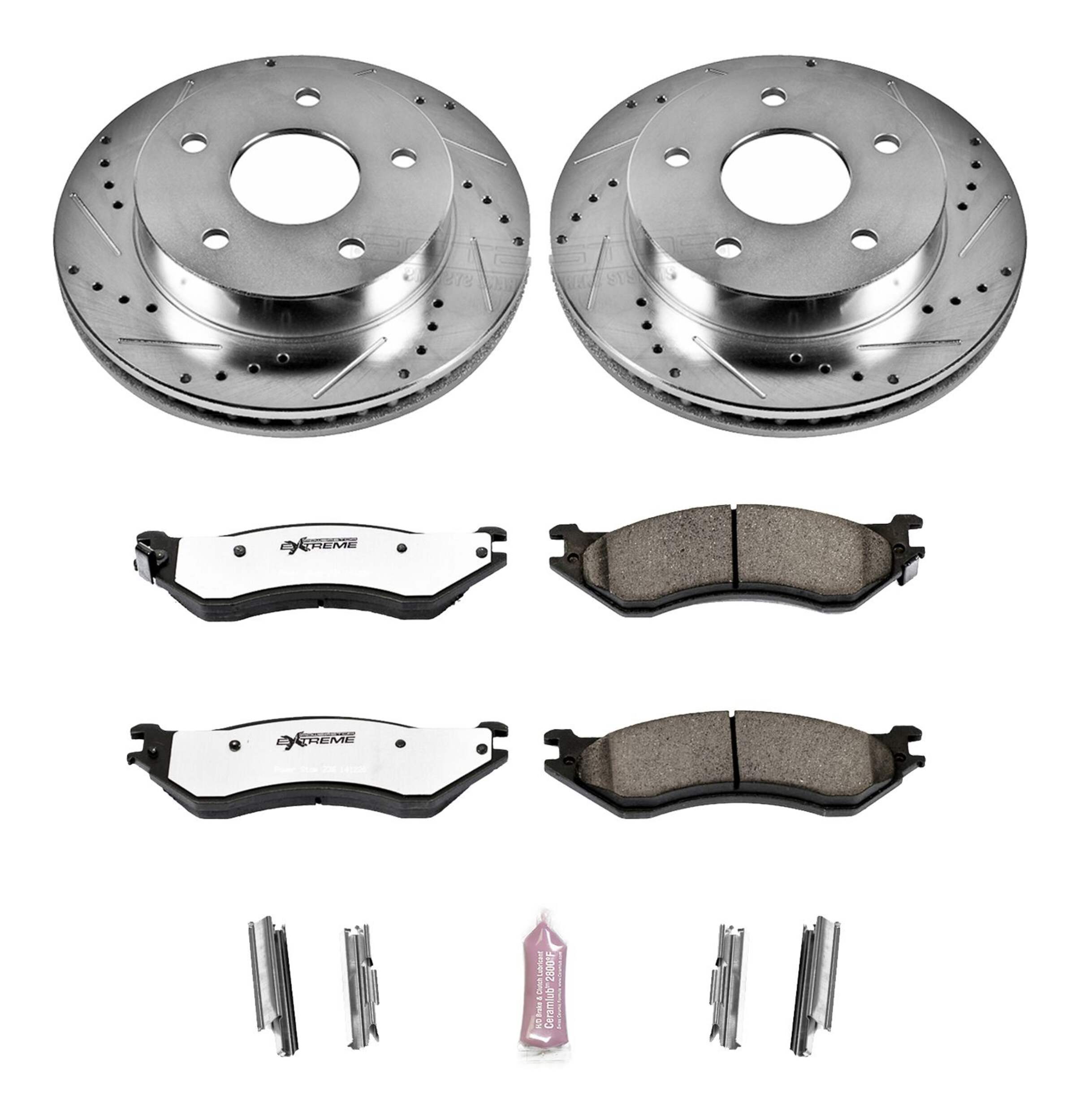 The Power Stop Z36 Truck & Tow Brake Kit provides extreme braking performance, specifically designed for trucks or 4x4s. The Z36 Carbon-Fiber Ceramic formula ensures dust-free braking, while premium stainless steel shims allow superior heat dissipation and virtually noise-free braking. The kit includes drilled and slotted performance rotors for optimal cooling, plated in zinc (excluding hub assemblies) for maximum rust protection. A ceramic brake lubricant and a premium stainless steel hardware kit are also included for your convenience.