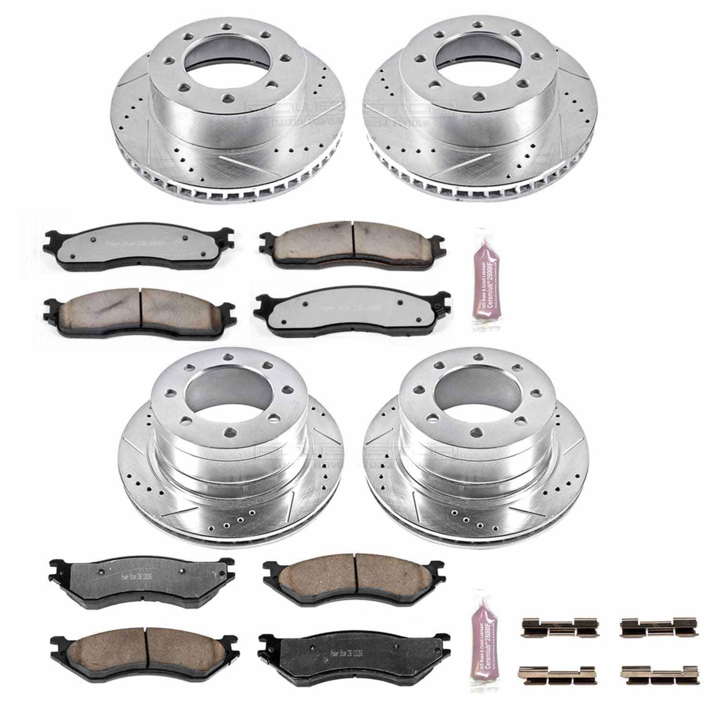The Power Stop Z36 Truck & Tow Brake Kit provides extreme braking performance, specifically designed for trucks or 4x4s. The Z36 Carbon-Fiber Ceramic formula ensures dust-free braking, while premium stainless steel shims allow superior heat dissipation and virtually noise-free braking. The kit includes drilled and slotted performance rotors for optimal cooling, plated in zinc (excluding hub assemblies) for maximum rust protection. A ceramic brake lubricant and a premium stainless steel hardware kit are also included for your convenience.