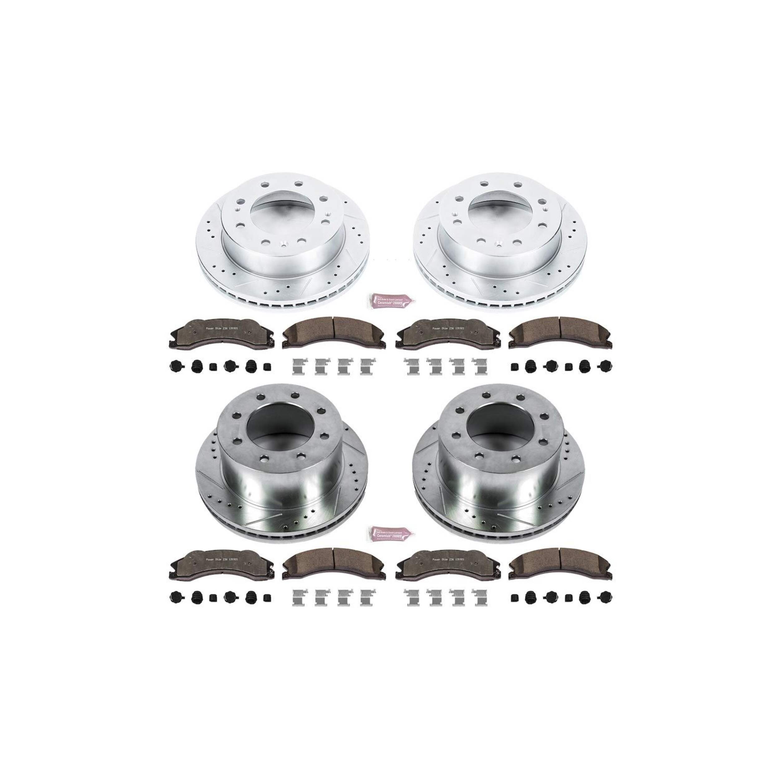 The Power Stop Z36 Truck & Tow Brake Kit provides extreme braking performance, specifically designed for trucks or 4x4s. The Z36 Carbon-Fiber Ceramic formula ensures dust-free braking, while premium stainless steel shims allow superior heat dissipation and virtually noise-free braking. The kit includes drilled and slotted performance rotors for optimal cooling, plated in zinc (excluding hub assemblies) for maximum rust protection. A ceramic brake lubricant and a premium stainless steel hardware kit are also included for your convenience.