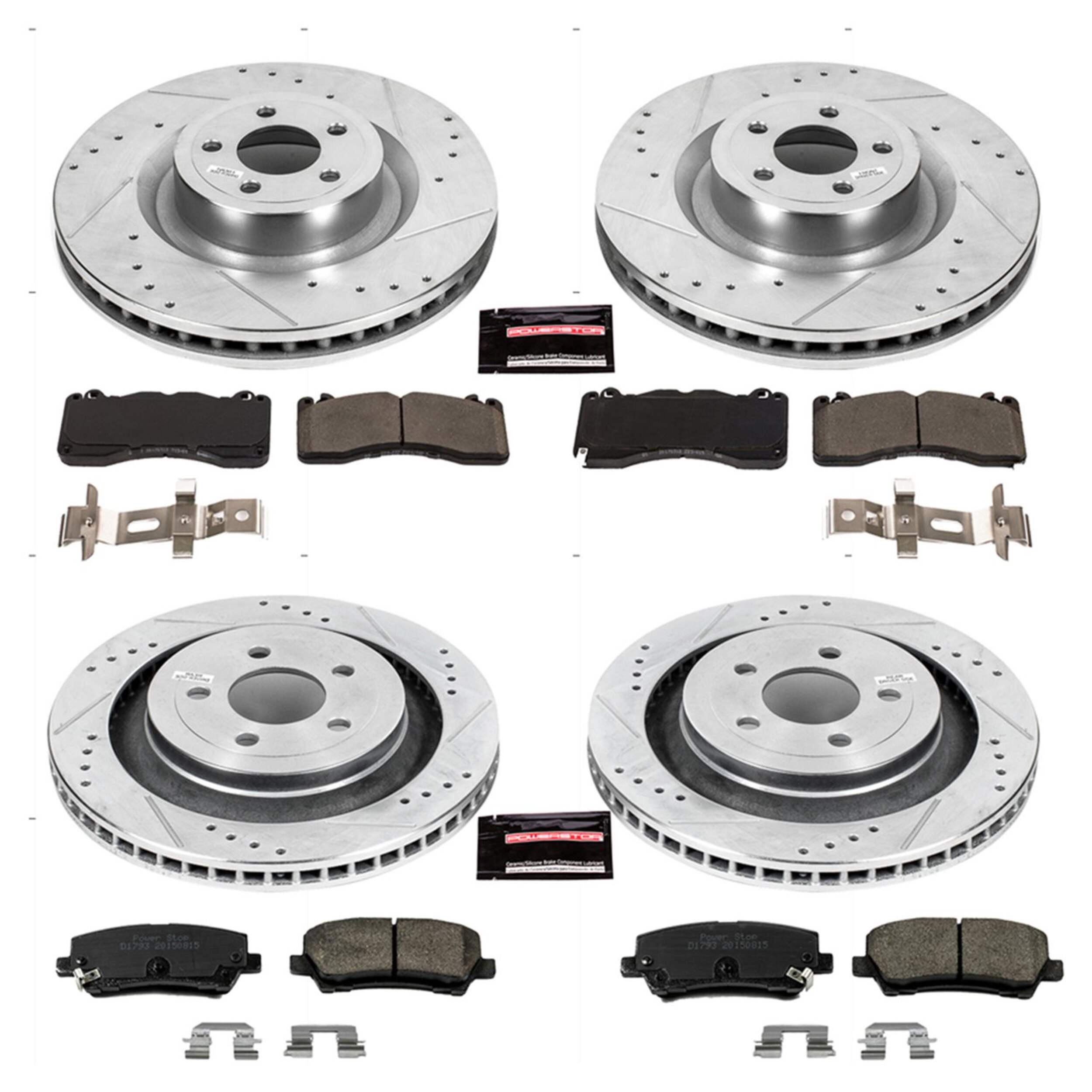 The Power Stop Z23 Evolution Sport Performance Brake Kit delivers exceptional braking power with its Z23 Carbon-Fiber Ceramic formula. With dust-free performance and premium rubberized shims, enjoy virtually noise-free braking. The kit features drilled and slotted performance rotors for optimal cooling and rotors plated with zinc for rust protection (excluding hub assemblies). Including a ceramic brake lubricant and a premium hardware kit, it comes with two sets of brake pads, four rotors, and all necessary installation hardware. With the Power Stop Z23, experience enhanced braking in a comprehensive, easy-to-install package.
