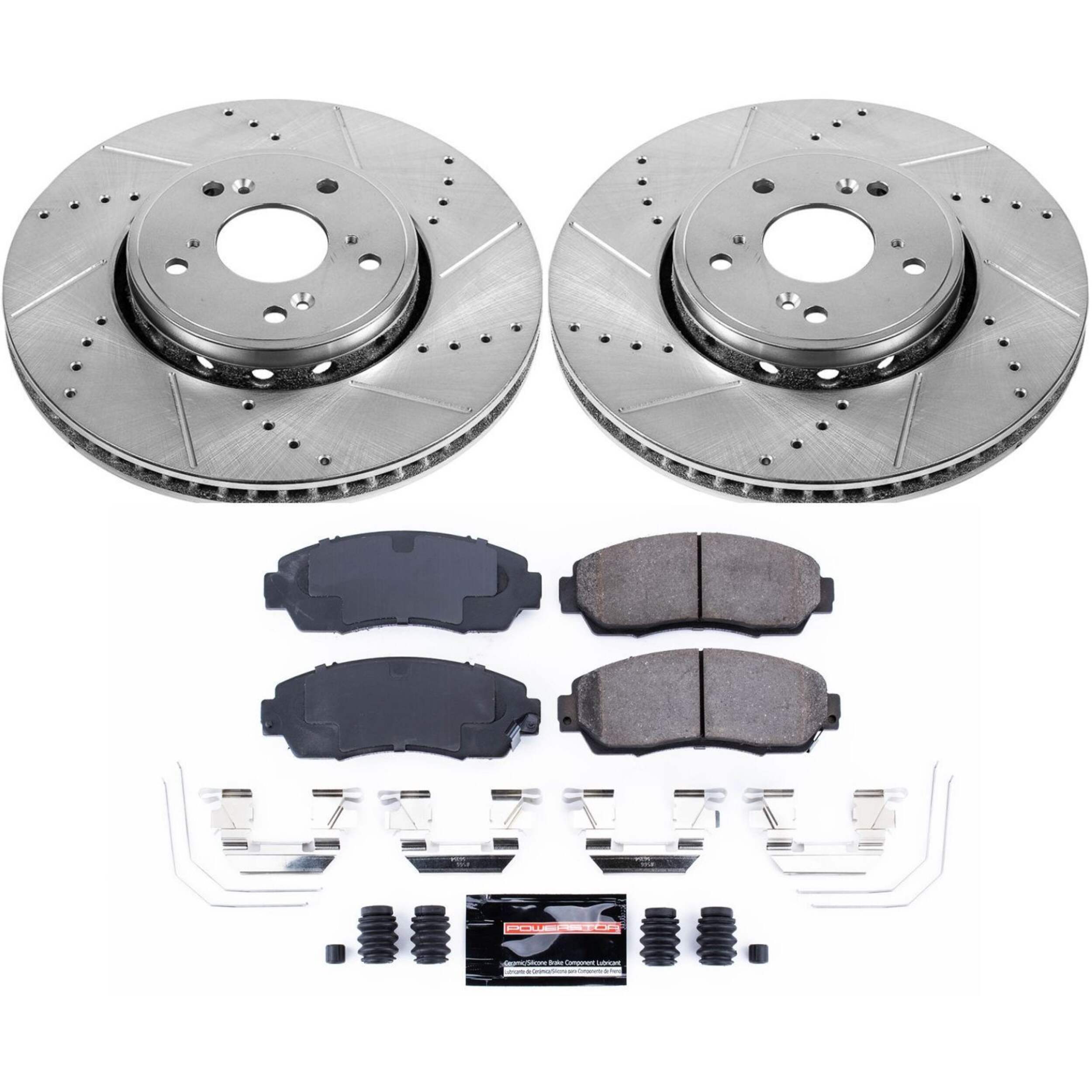 Includes ceramic brake lubricant and premium hardware kit