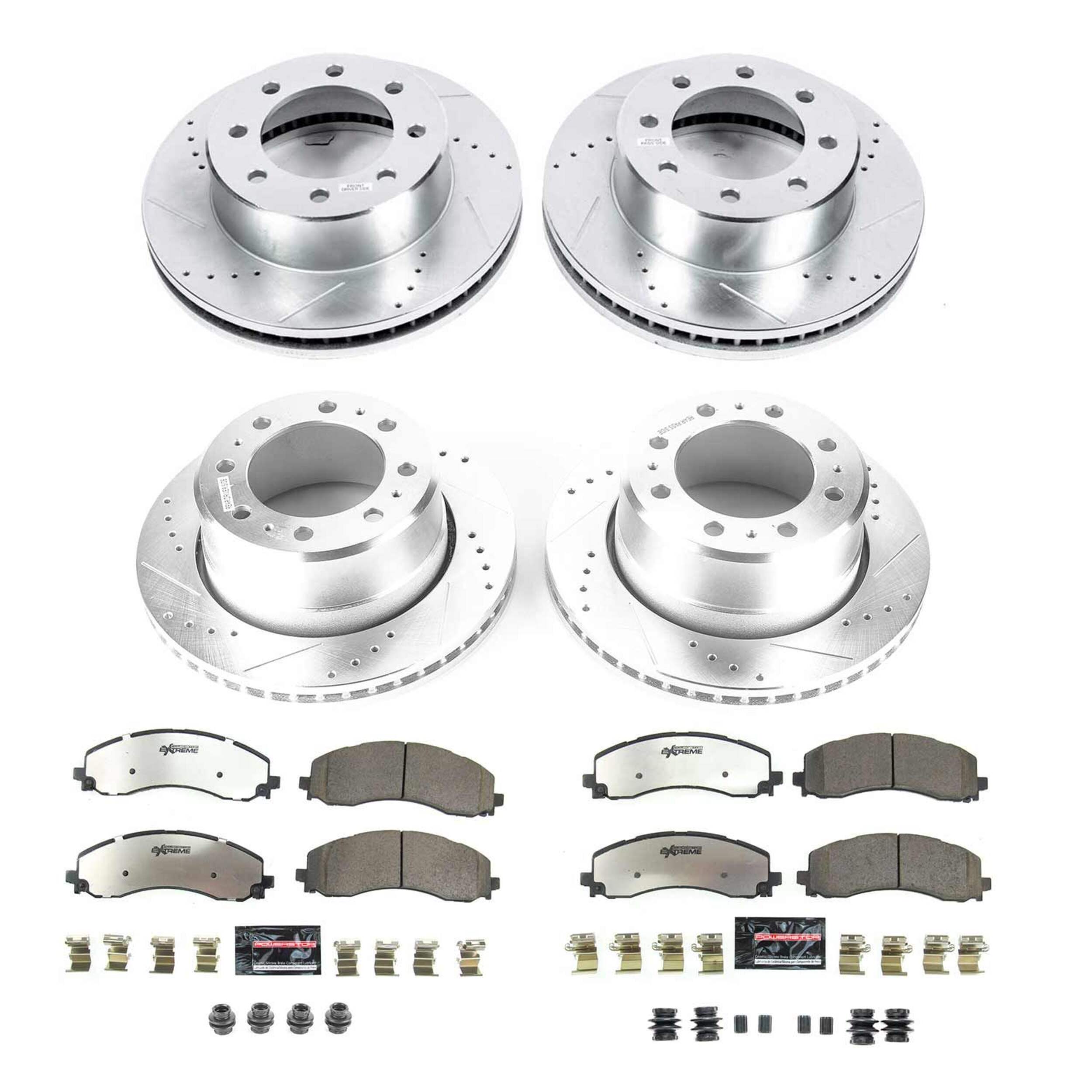 The Power Stop Z36 Truck & Tow Brake Kit provides extreme braking performance, specifically designed for trucks or 4x4s. The Z36 Carbon-Fiber Ceramic formula ensures dust-free braking, while premium stainless steel shims allow superior heat dissipation and virtually noise-free braking. The kit includes drilled and slotted performance rotors for optimal cooling, plated in zinc (excluding hub assemblies) for maximum rust protection. A ceramic brake lubricant and a premium stainless steel hardware kit are also included for your convenience.