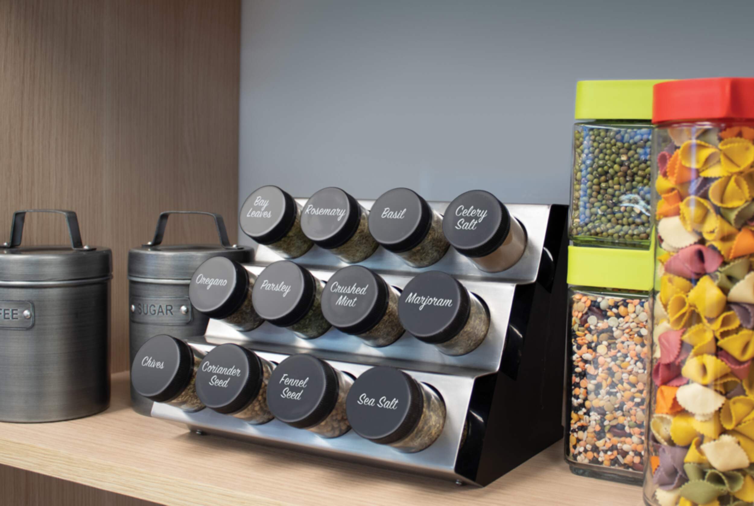 • Kamestien 12-Jar Spice Rack can be placed on the counter or stored in the cabinet to save space