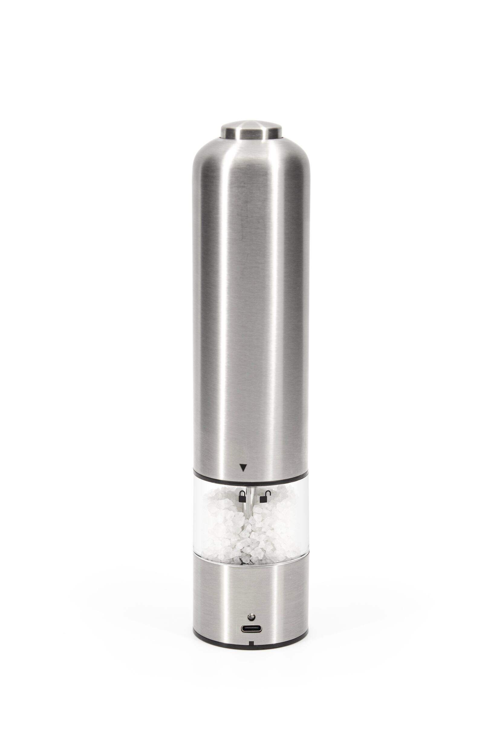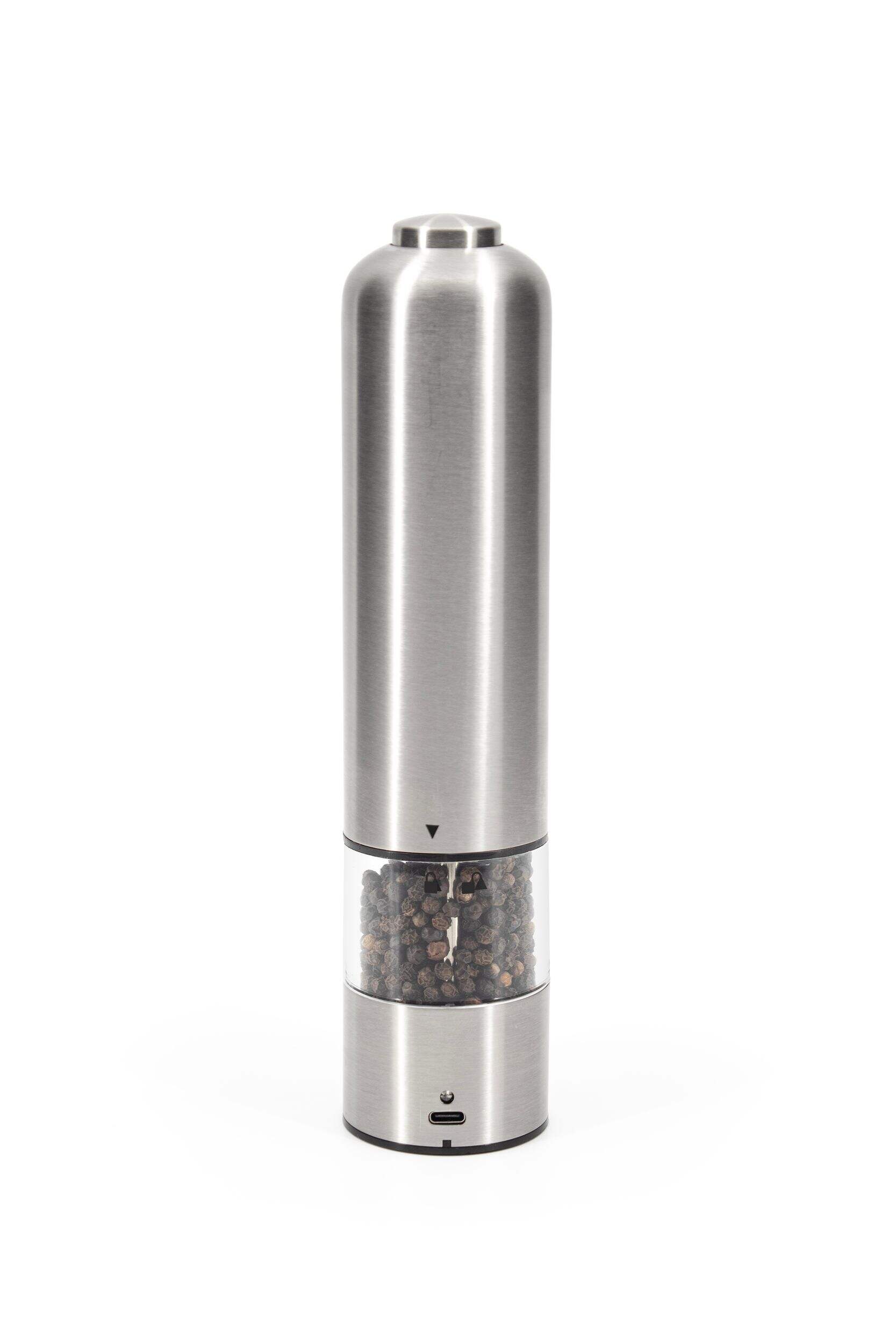 Elevate your culinary skills with the Kamenstein USB Rechargeable Stainless Steel Salt and Pepper Grinder. This innovative grinder combines modern design with functionality, allowing you to season your dishes to perfection. Simply charge the grinder via USB, fill it with your preferred seasoning blend, and twist the ergonomic handle to dispense just the right amount of salt or pepper. Its compact and stylish design makes it a sleek addition to any kitchen countertop.