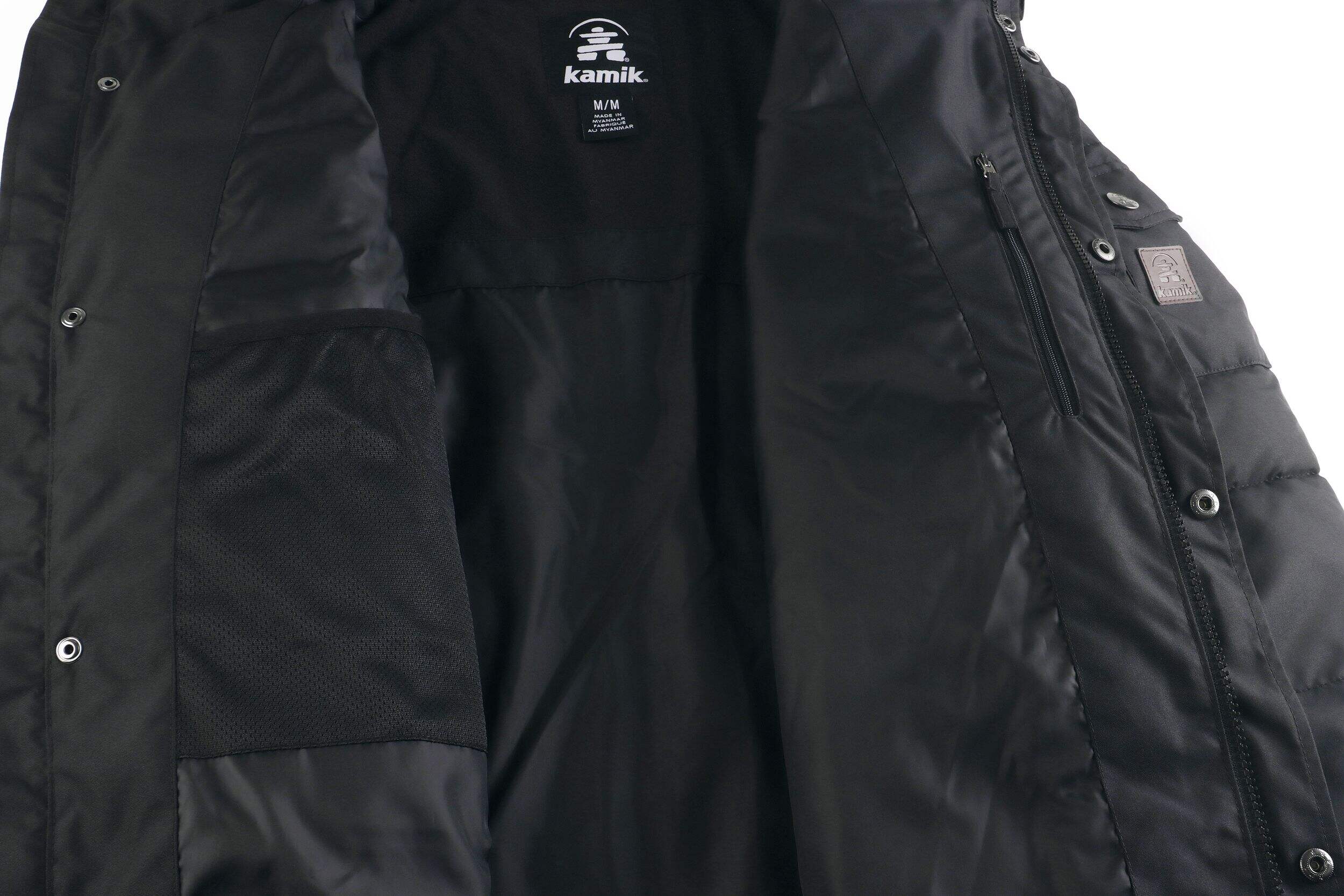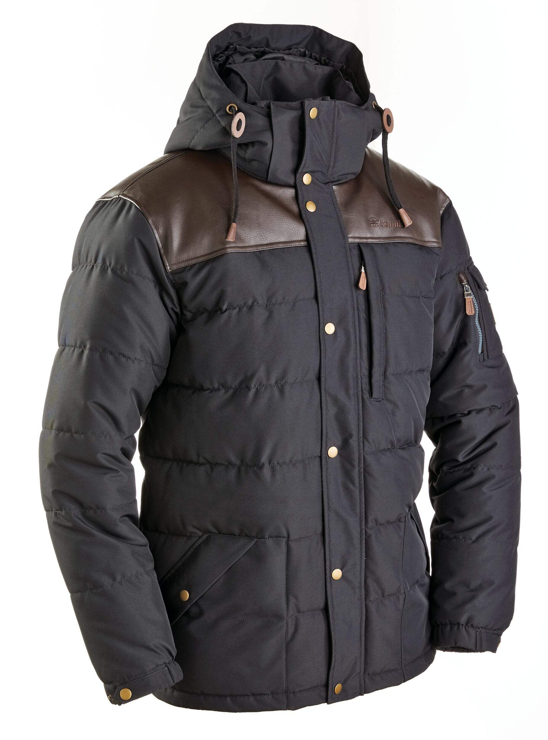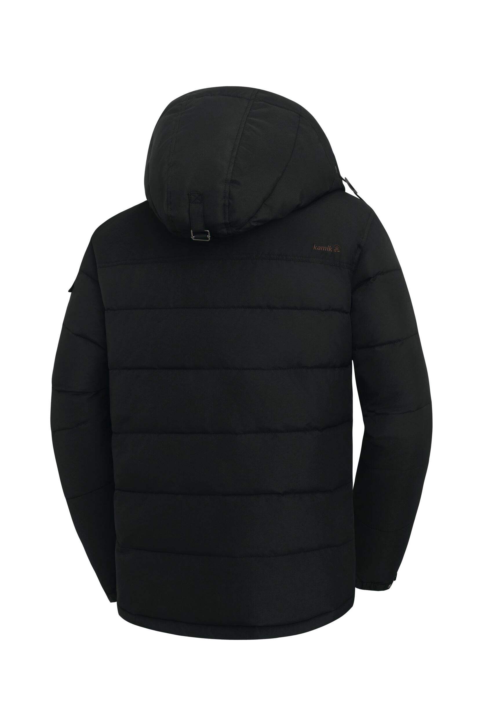 Give bitterly cold days the brush-off with this Kamik Winter Parka. This puffer-style jacket features padded synthetic insulation and a water-resistant outer shell for secure warmth during long winter walks, snowmobiling and snow shovelling. The hooded design includes faux fur trim and zipper closures to seal out chilly drafts. The roomy cut allows you to layer up with your favourite bib pants and still move freely.