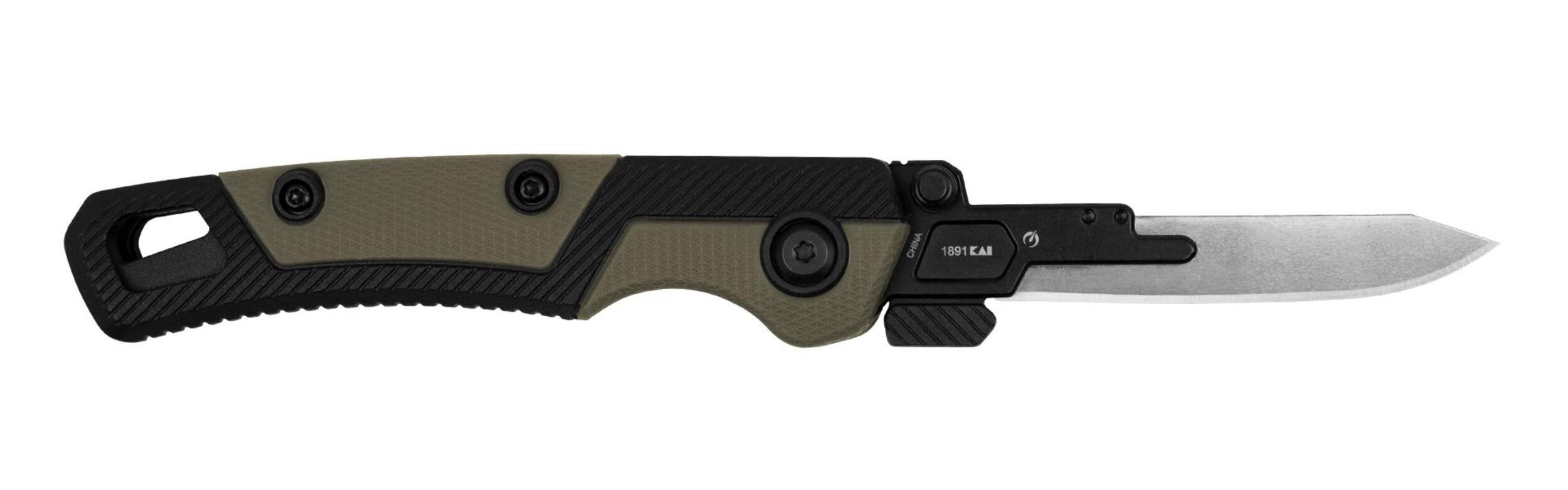 The manual opening LoneRock RBK 2 is an upgraded version of Kershaw’s skinning and caping knife. Like the original, it includes replaceable surgical-precision blades. Instead of having to stop and sharpen when a knife gets dull in the middle of skinning, just snap in a new blade and keep working. A liftable liner allows users to remove and replace blades safely and easily with a non-slip grip. The RBK 2 also features a revamped handle for greater ergonomics and longer work sessions. It comes with 15 blades and a “buddy” handle. This slim, extra handle holds an RBK 2 blade so that both you and your buddy can take on the skinning task—to get the job done quicker.