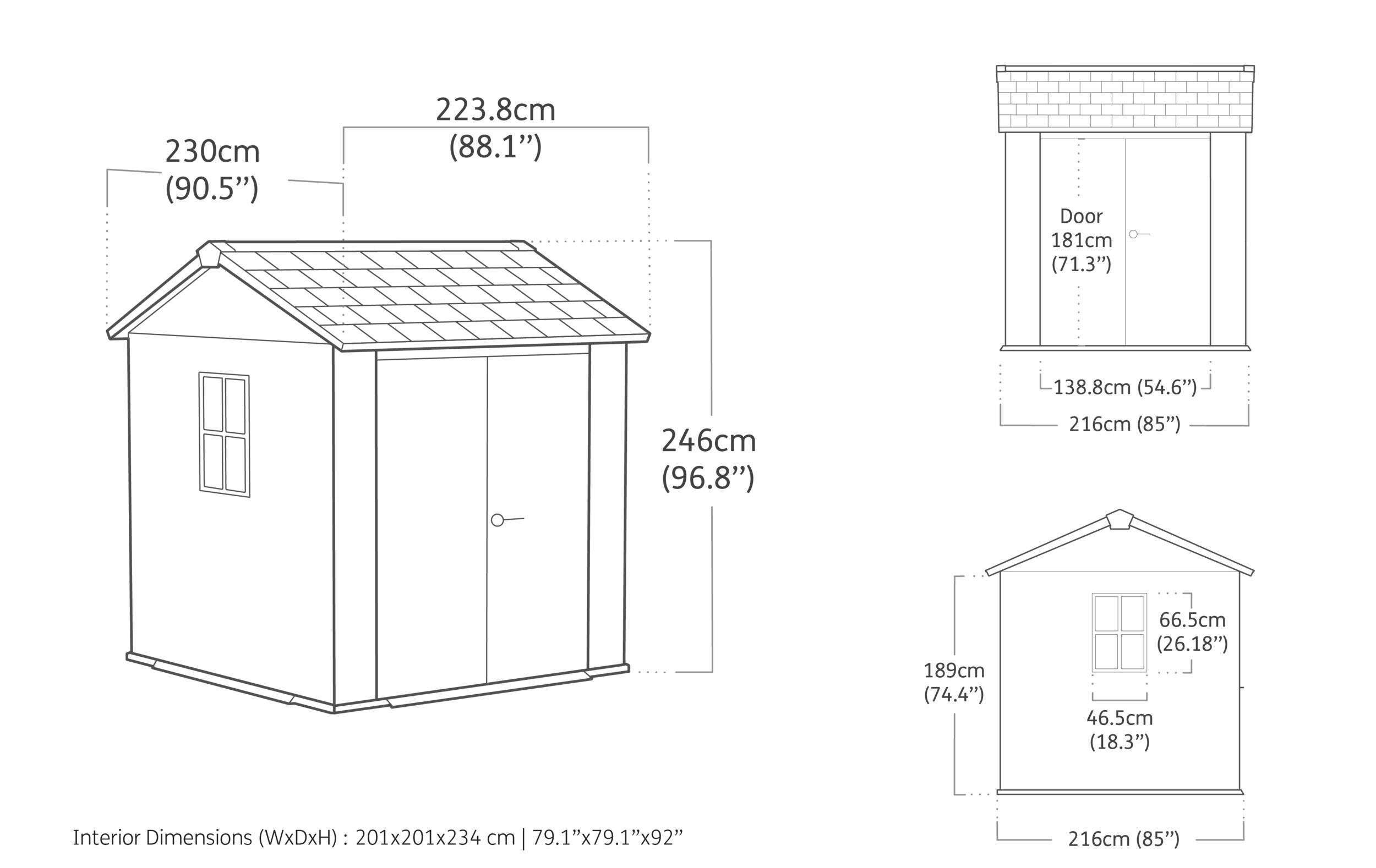 Are you looking for outdoor storage that’s durable and easy to assemble? The Newton Plus 7.5' x 7' storage shed is just what you’re looking for. This shed comes with steel-reinforced and fortified roof that can handle more than a foot of snow, heavy-duty floors and even a place for a lock! At the peak of the gables, near the roofline, the shed includes ventilation on both the front and rear. It’s made of durable resin with thick double-walled construction, so the shed is able to stand up to the elements and be weather-resistant. You can also install the wide double doors on either side of the storage shed. Once assembled, the door configuration cannot be altered. You can easily move stored items like bikes, lawnmowers and gardening tools without hassle. It has windows and skylight to let in natural light. Add this sturdy shed to your yard, today.