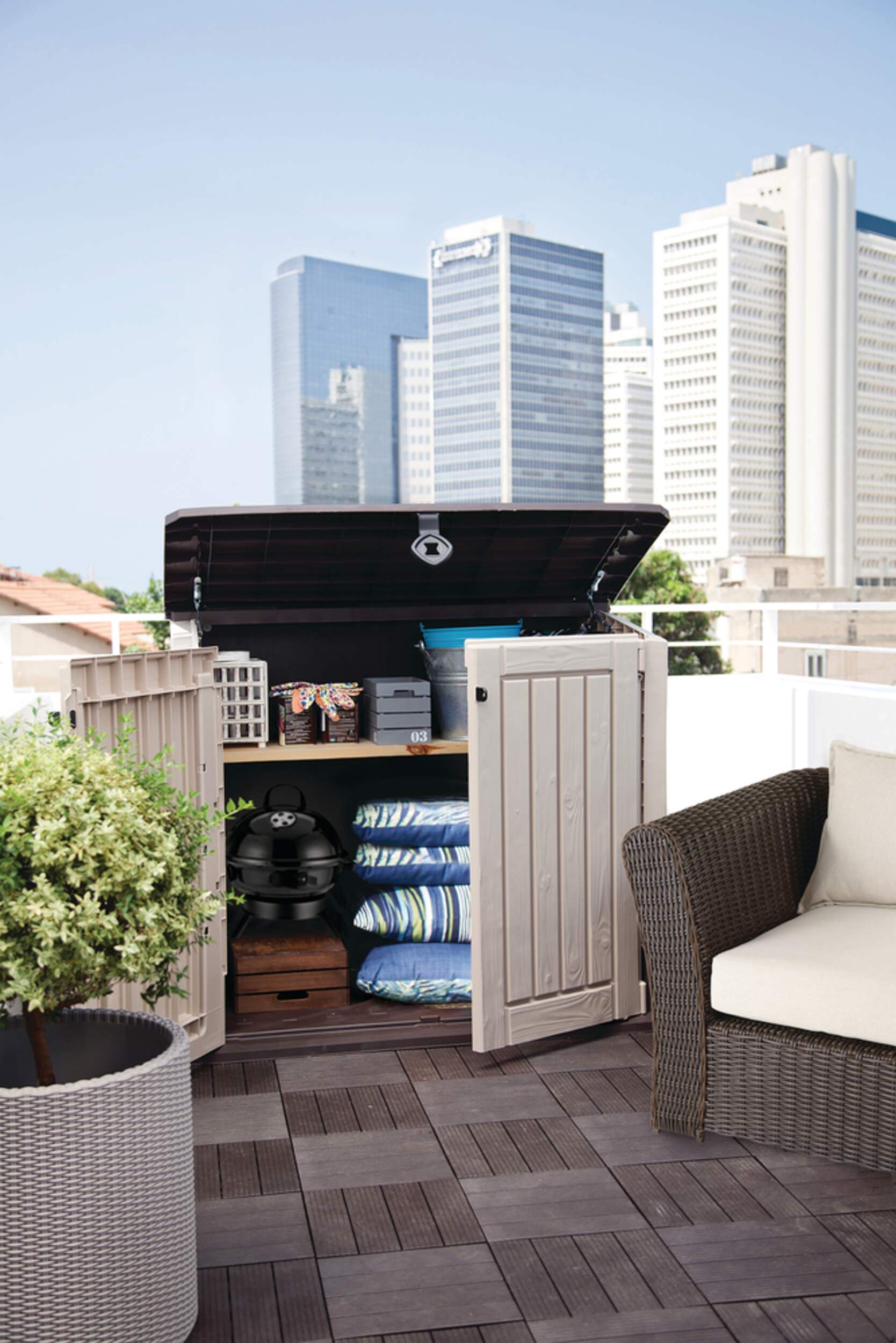 Keter Store-It-Out Midi Horizontal Shed is a versatile storage unit for patio, balcony or garden