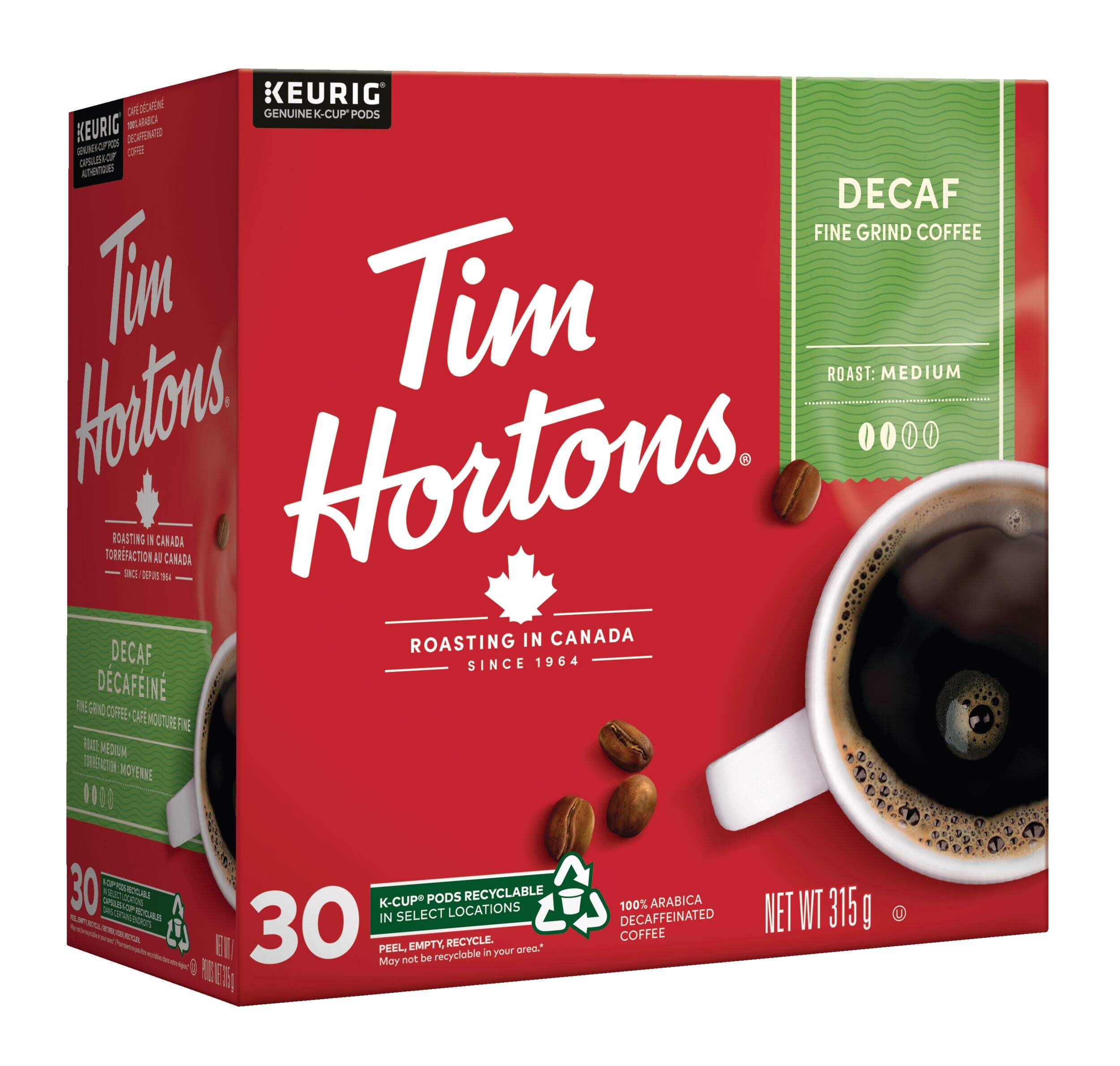 Indulge in the smooth, balanced taste of Tim Hortons Decaf Fine Grind Medium Roast with these Keurig K-Cup® Pods. Specifically designed for use in all Keurig K-Cup brewers, this light medium roast offers a gentle, aromatic experience for coffee lovers (without the caffeine). Enjoy the convenience and consistency of these easy-to-use pods by crafting a comforting cup of coffee any time of day.