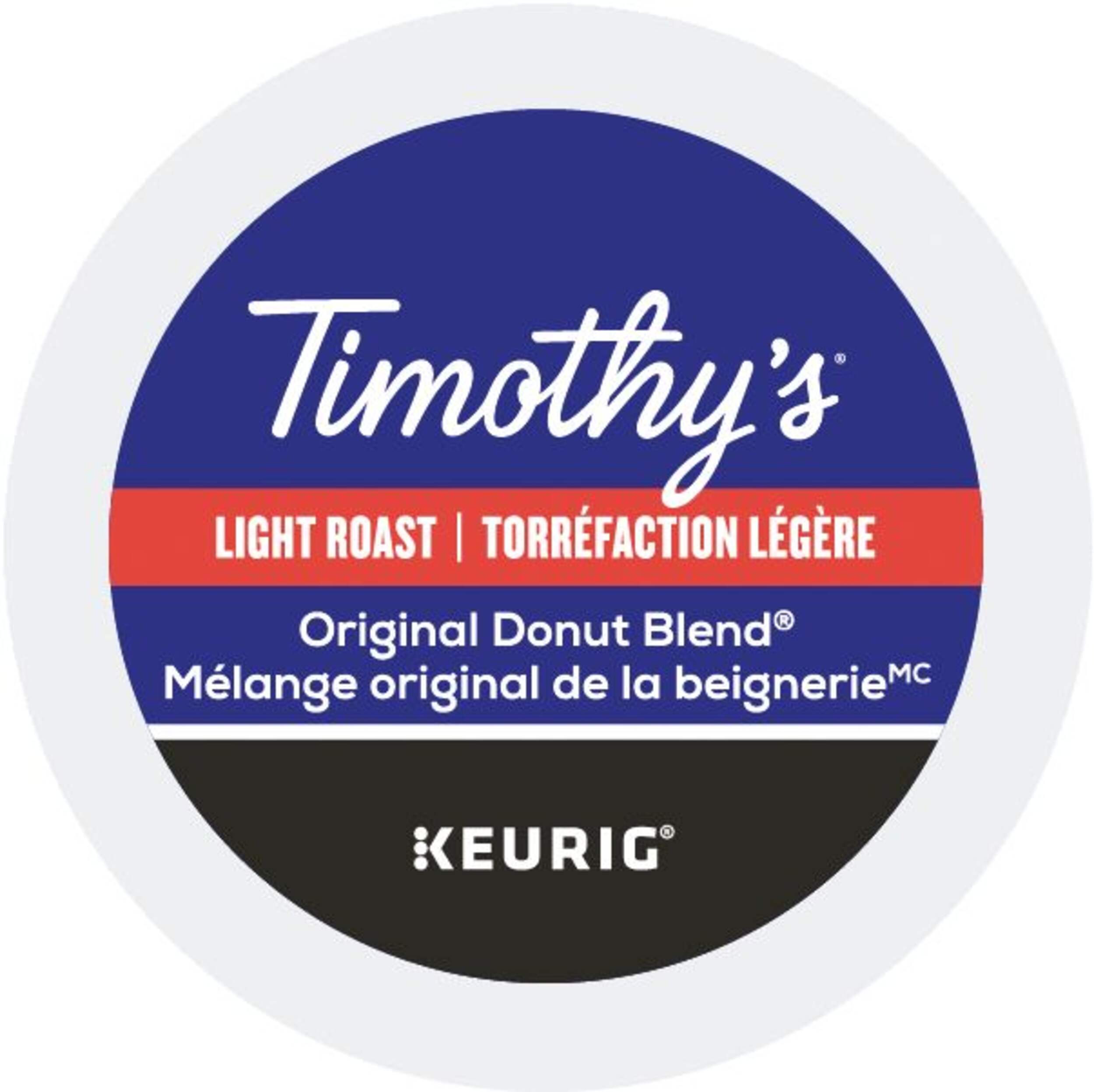 Start your day off right with Keurig Timothy's Original Donut Blend Light Roast K-Cup® Coffee Pods. This smooth blend has a good body and clean finish—a timeless donut shop classic to indulge your cravings for simpler mornings. Made from 100% responsibly sourced beans, this light roast coffee will conjure sweet nostalgic memories with every sip. The convenient K-Cup® format lets you brew a perfect cup in no time for an easy morning pick-me-up.