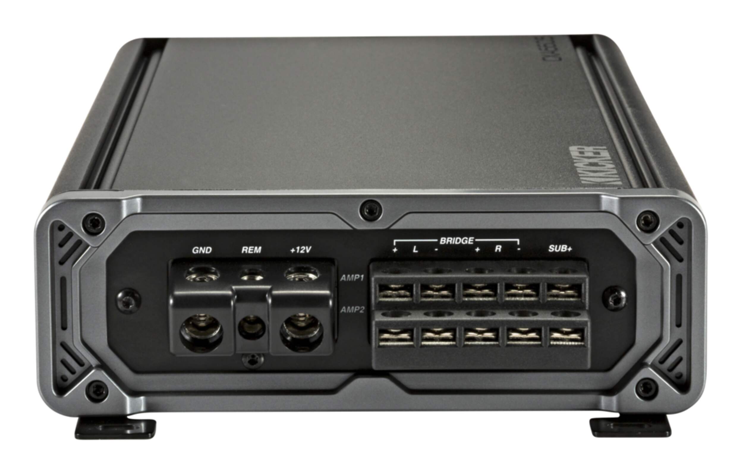 Kicker 4x75W 4-Channel Amp with 300W Subwoofer offers Class-A/B full-range channels
