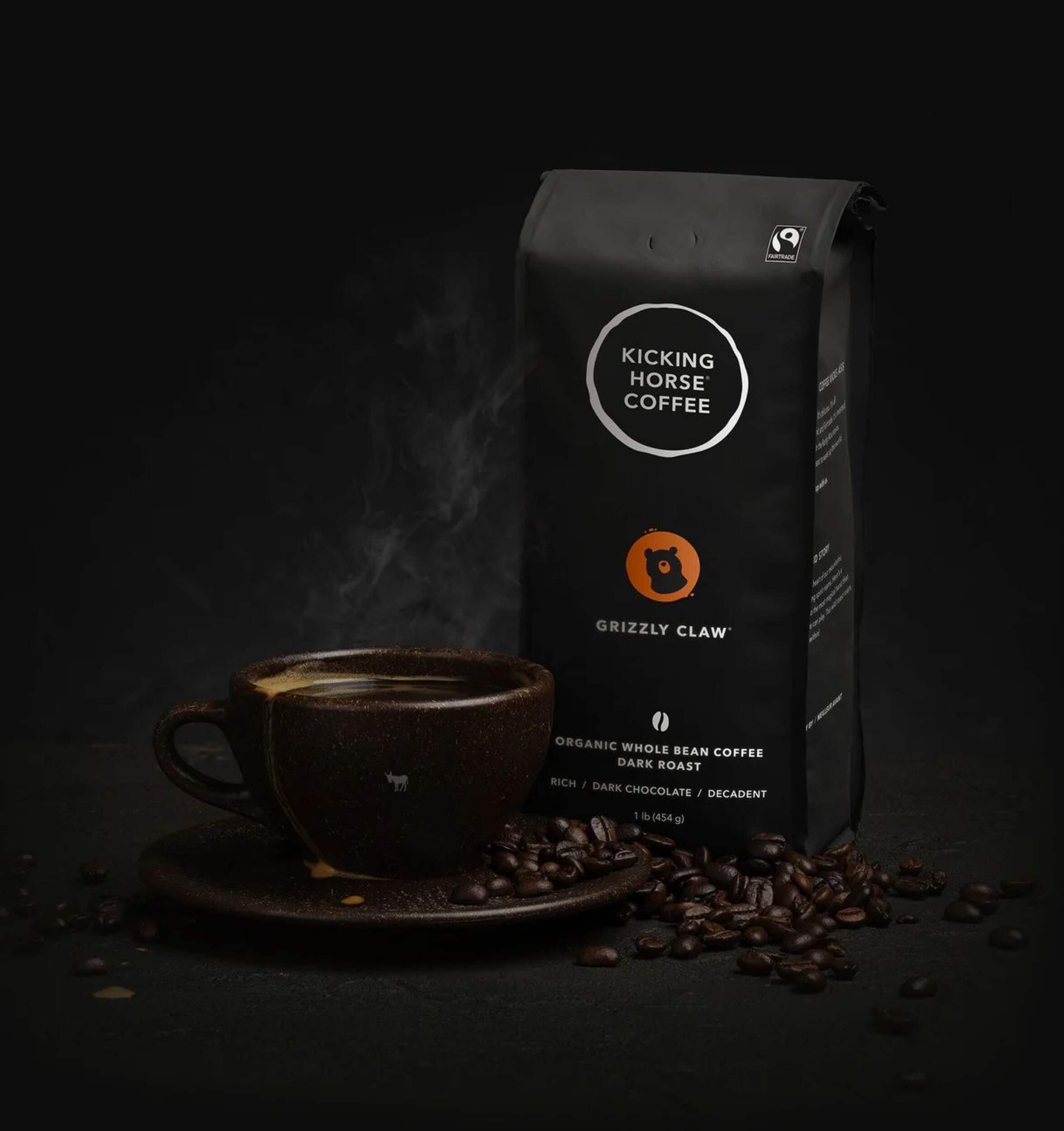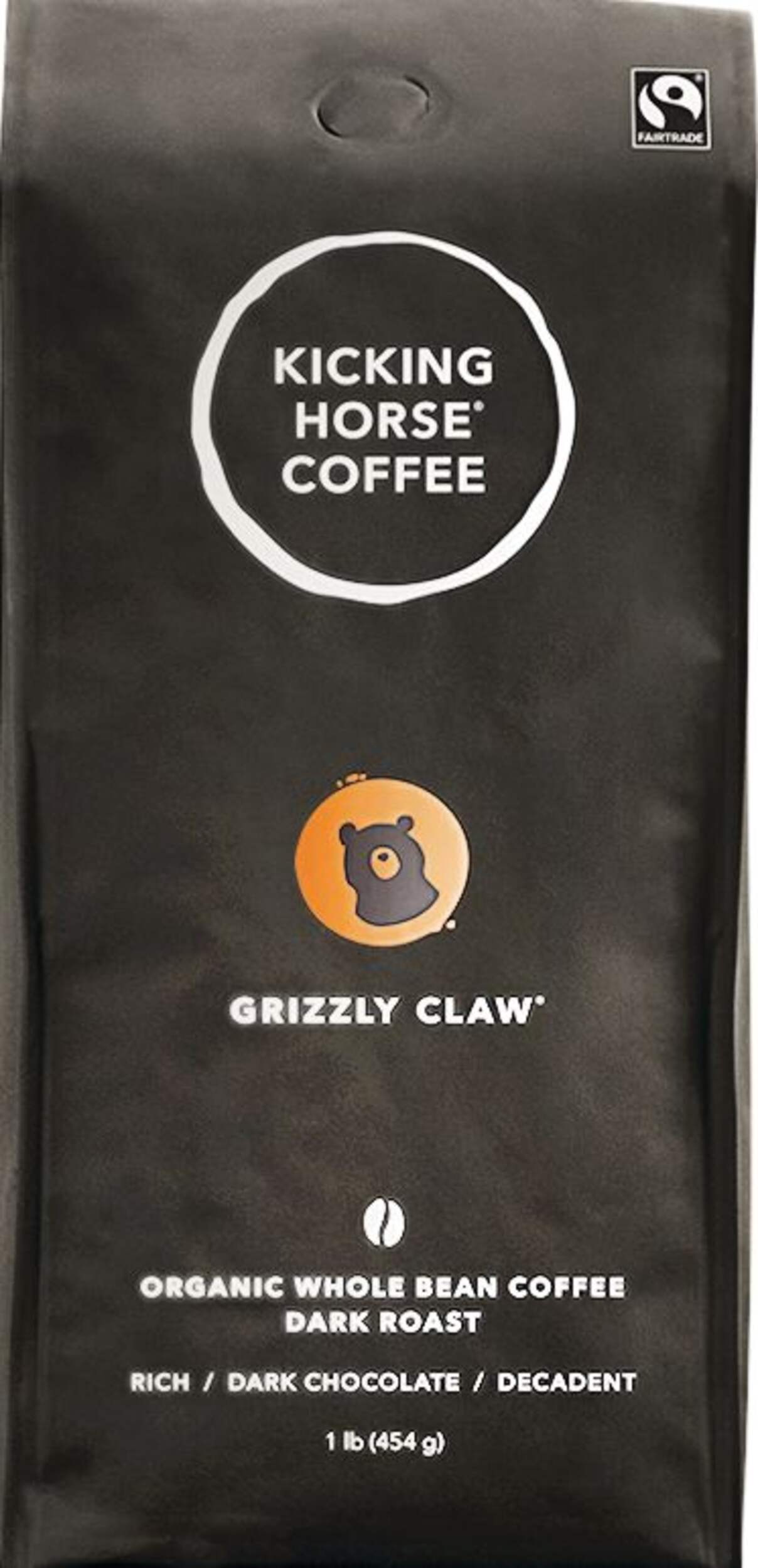 Kicking Horse Coffee's Grizzly Claw Dark Roast Whole Bean coffee (454-g) offers a rich, decadent flavour experience. Condensed sugar cane and cocoa powder notes blend with dark chocolate, cacao nibs, brown sugar, and roasted hazelnut aromas for a bold, indulgent taste. This dark roast whole bean coffee delivers a complex flavour profile, perfect for those who appreciate a robust, full-bodied brew. Carefully crafted with high-quality beans, Grizzly Claw Dark Roast provides a satisfying coffee experience in every cup.
