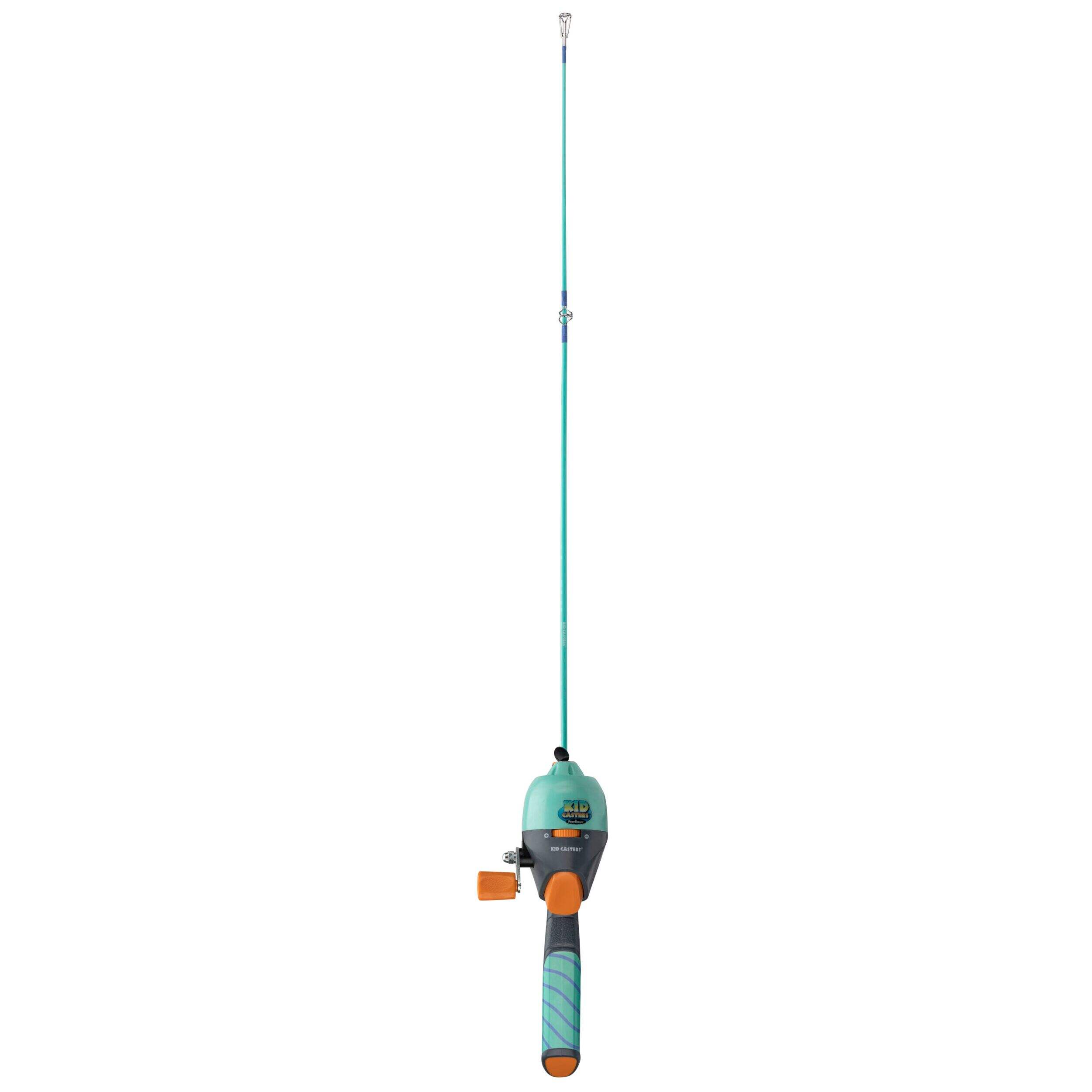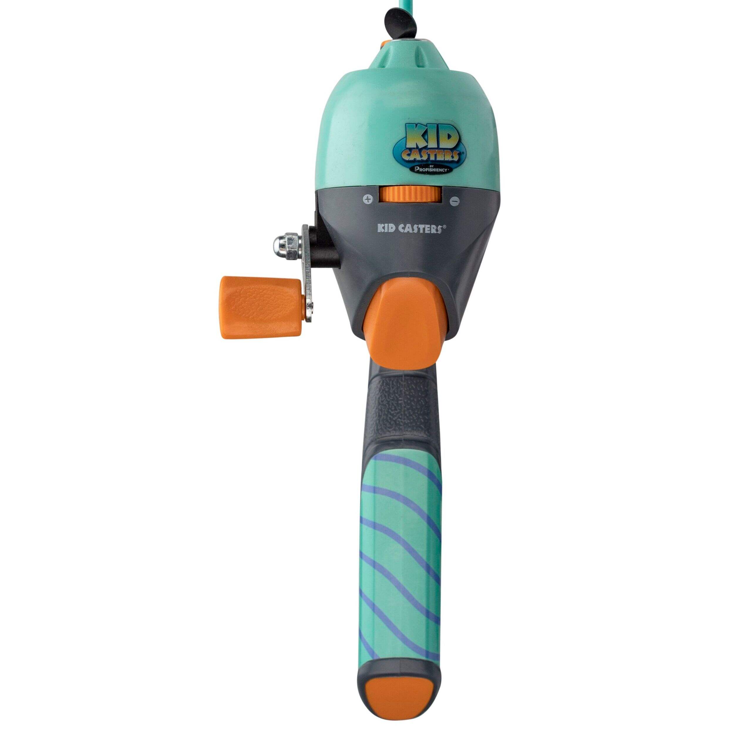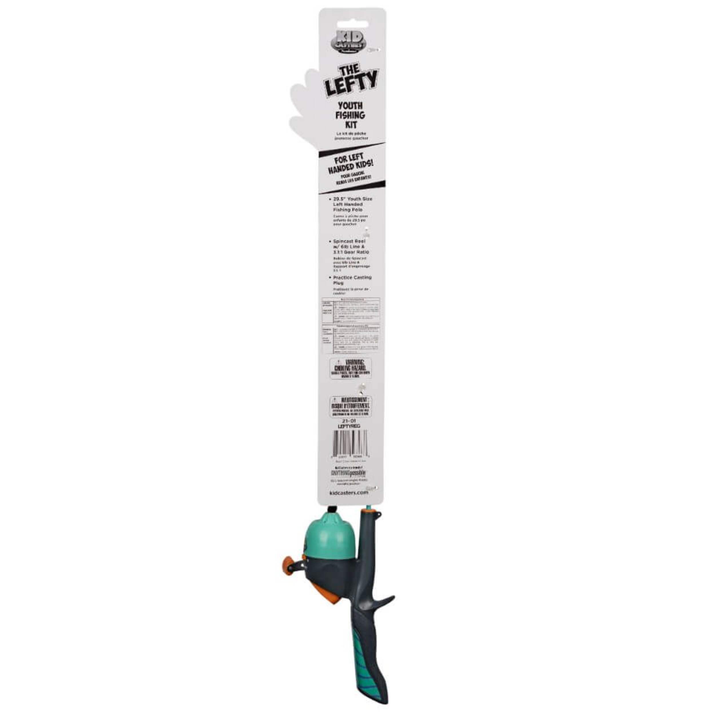 This Kid Casters The Lefty Spincast Combo is a youth-sized fishing rod and reel designed for left-handed casting. It features a left-handed spincast reel loaded with a 6 lb test line and a 3.1:1 gear ratio for smooth retrieves. The rod length and lightweight spincast reel make casting and catching fish easy for kids. A practice casting plug is also included with the set, allowing young anglers to hone their skills before hitting the water.