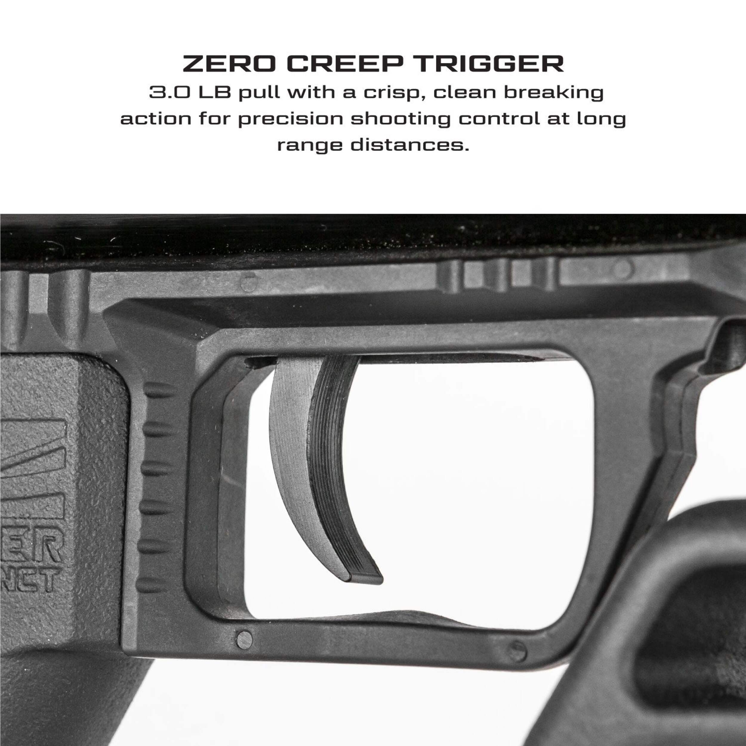 3.0-lb zero creep pull with a clean breaking action for precision shooting control at long-range distances