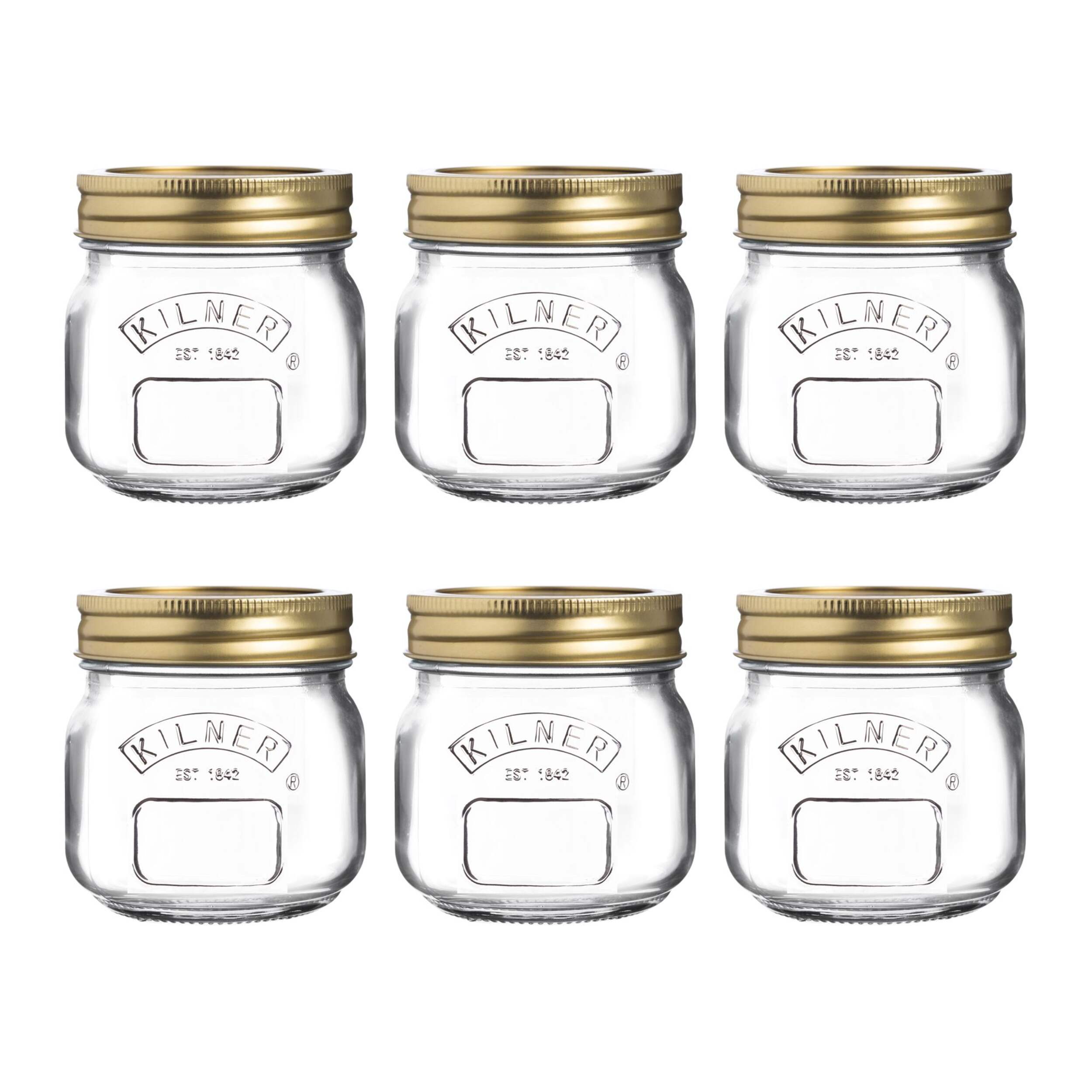 These timeless preserving jars with classic Kilner design feature an easy-twist metal lid made up of 6 pieces, a replaceable vacuum seal and metal screw band to secure the seal. The screw band can be re-used up to 10 times, though the seal needs replacing after each use. They're a great way to make the most of fruit and vegetable surpluses and, provided you follow the instructions, the jars will prove indispensable. Each glass jar holds 250 ml, perfect for storing small batches of homemade jam, pickles or other preserves.