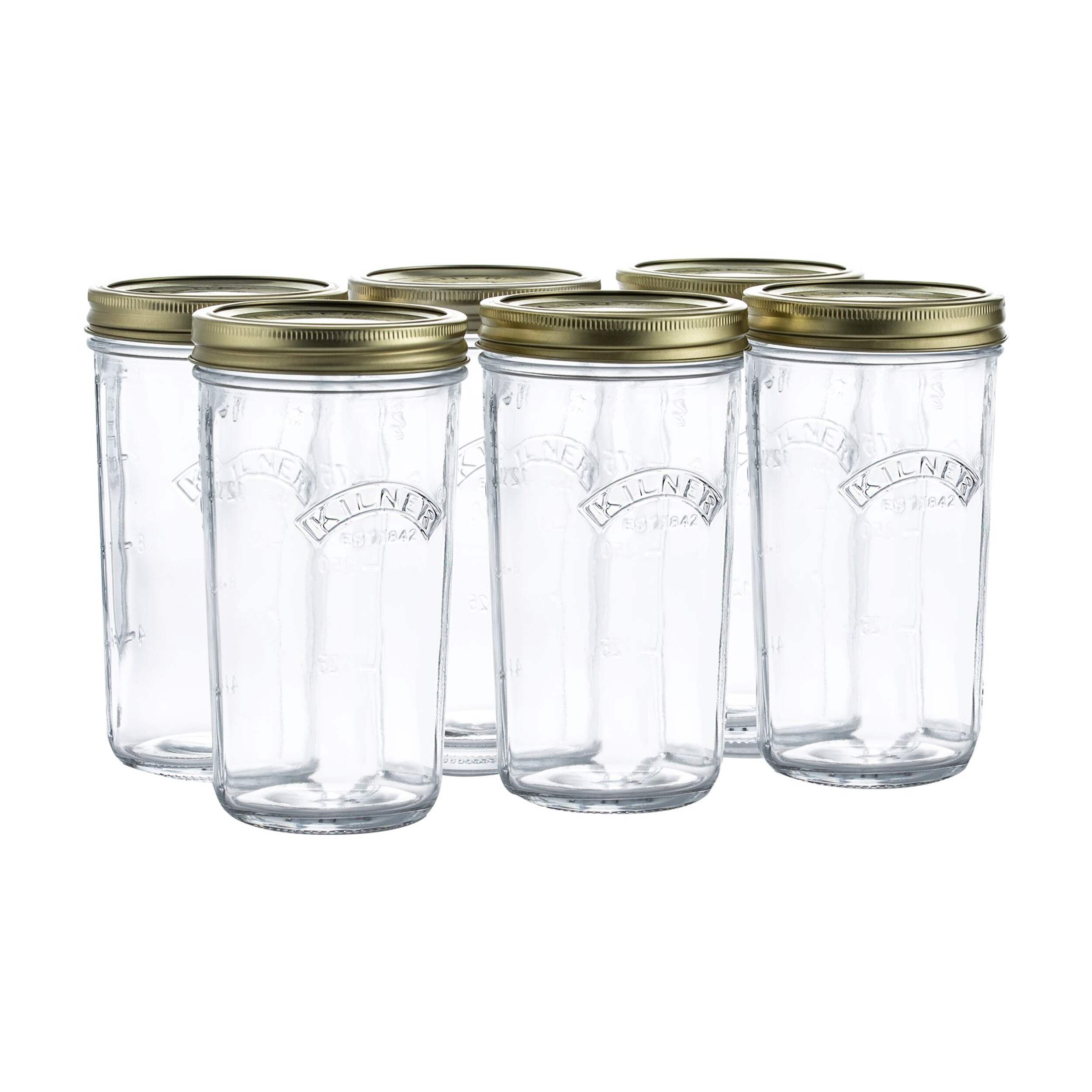 Kilner Wide Mouth Glass Mason Jars are ideal for storing and preserving homemade foods, as well as whole fruits and vegetables with ease. The 2-piece lid system creates an airtight vacuum seal, keeping contents fresher for longer. Showcasing the classic Kilner logo and embossed volume indicators, these jars combine practicality with timeless charm, making them a must-have for both storage and display.