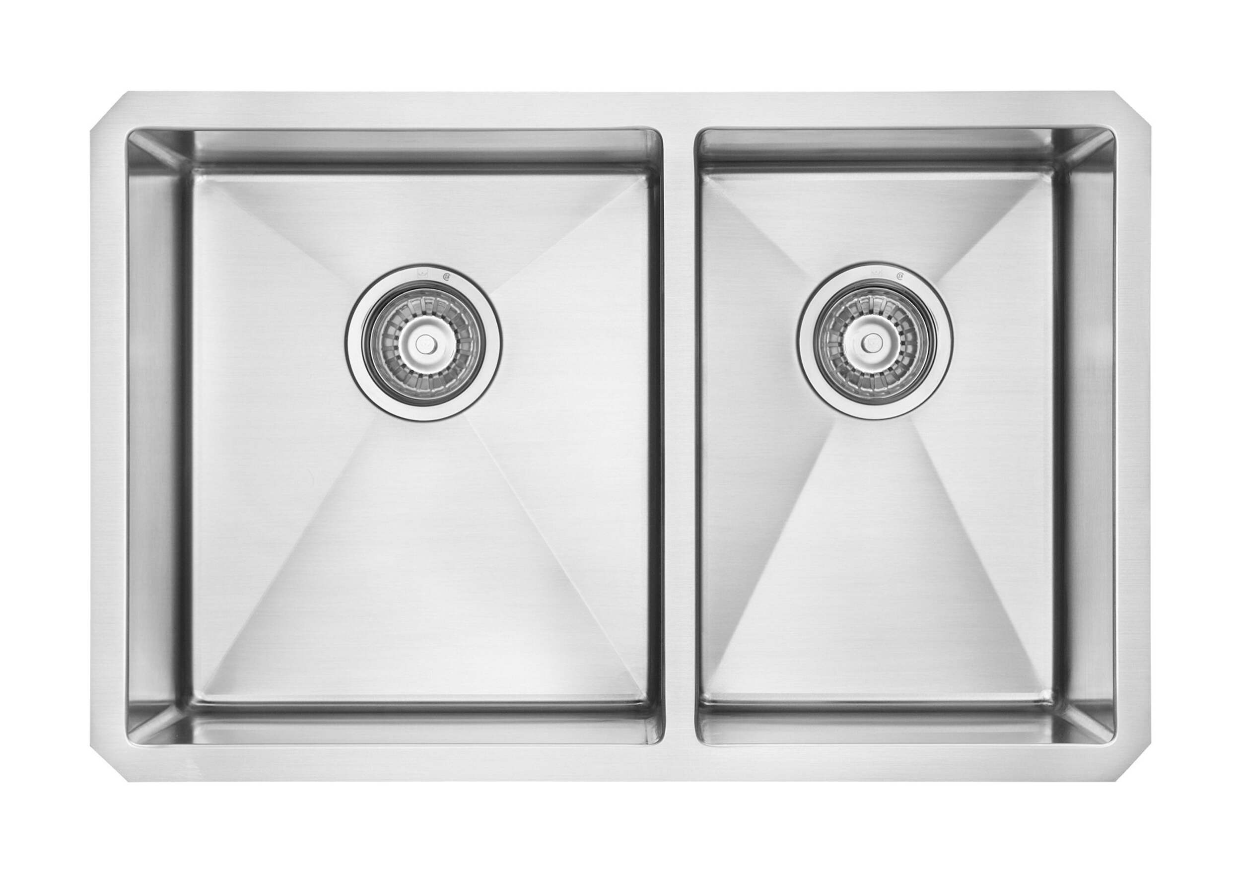 This double undermount sink is fabricated from durable 18 gauge stainless steel with a subtle satin finish. The 10 mm radius corners mean no pesky food scraps will get trapped, while the included bottom grids and waste fittings make installation simple. Perfect for the home chef who wants a sink that is workhorse enough for all their food prep, but stylish enough to complement their designer kitchen.