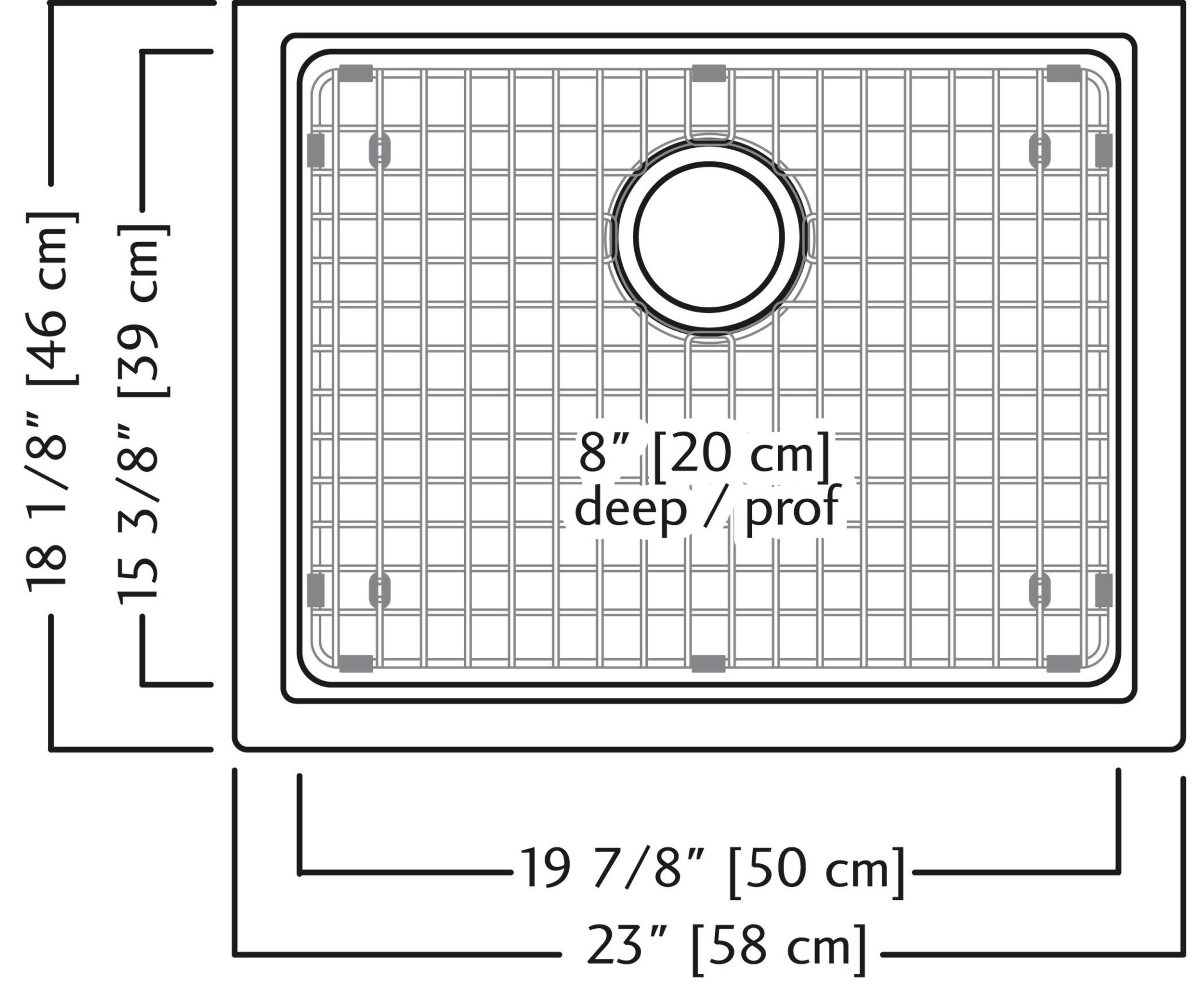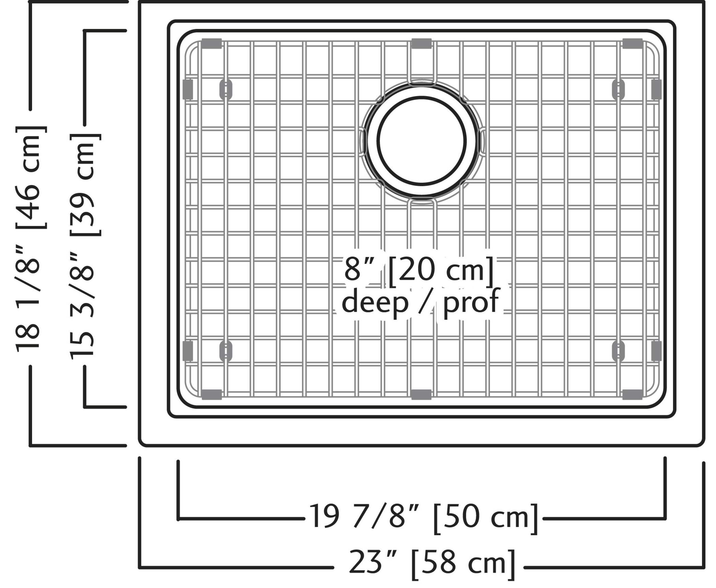 Full size dimensions: 18 1/8" (46 cm) L x 23" (58.4 cm) W x 8" (20 cm) D