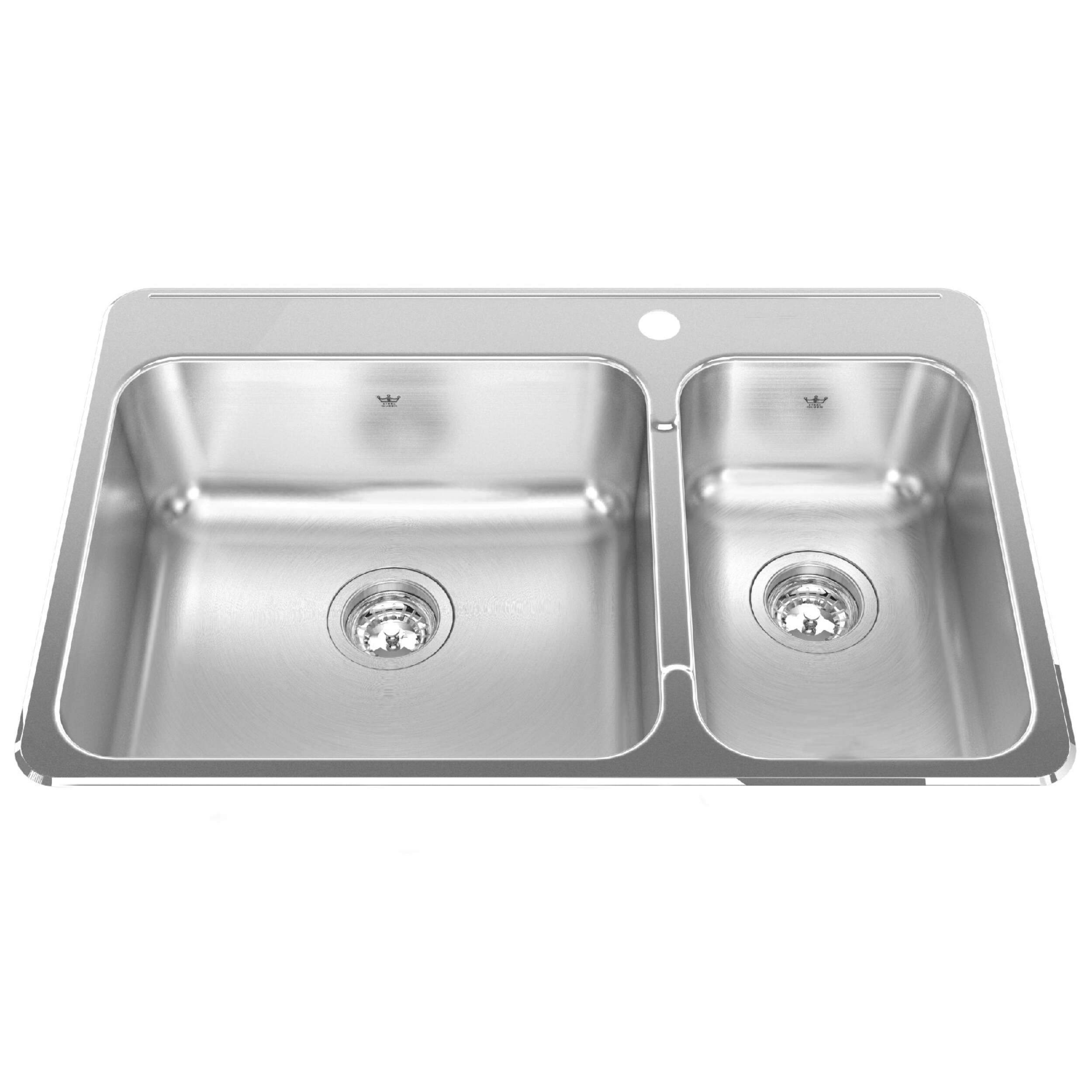 Steel Queen 31.25-in x 20.5-in Drop In Double Bowl 3-Hole Stainless Steel Kitchen Sink. Combining design and durability worthy of the Kindred Crown, Steel Queen sinks have been a homeowner's favorite for years. Widely regarded as some of the easiest-to-install sinks, these versatile drop in models are the top choice of many home renovators. The EZ Torque™ fastener system simplifies the installation of your sink by allowing you to drop and drill it into place, securely locking the sink to the countertop. Steel Queen sinks are made from durable 20-gauge stainless steel with a finish that will stand up to hard work, year in and year out.