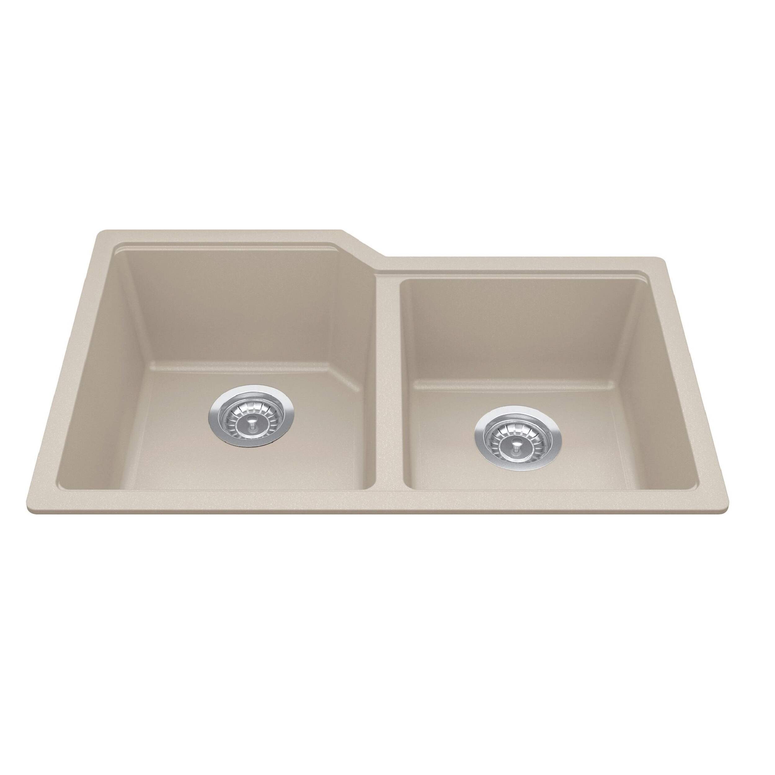 Urban Series 31-in x 20-in Undermount Double Bowl Granite Kitchen Sink in Champagne. Crafted in sumptuous natural tones to enhance your home, Kindred Urban undermount granite sinks repel tough stains, including wine, coffee, and grease. Soapy water is all you’ll need to clean these models, which have colorfast UV protection to maintain their earthy beauty for years. The Sanitized® hygiene feature will protect your sink from odor-causing bacteria and reduce your clean-up time. An integrated accessory rail allows you to slide custom-fit accessories across the sink for efficient food prep and clean-up. Custom-fit accessories are sold separately