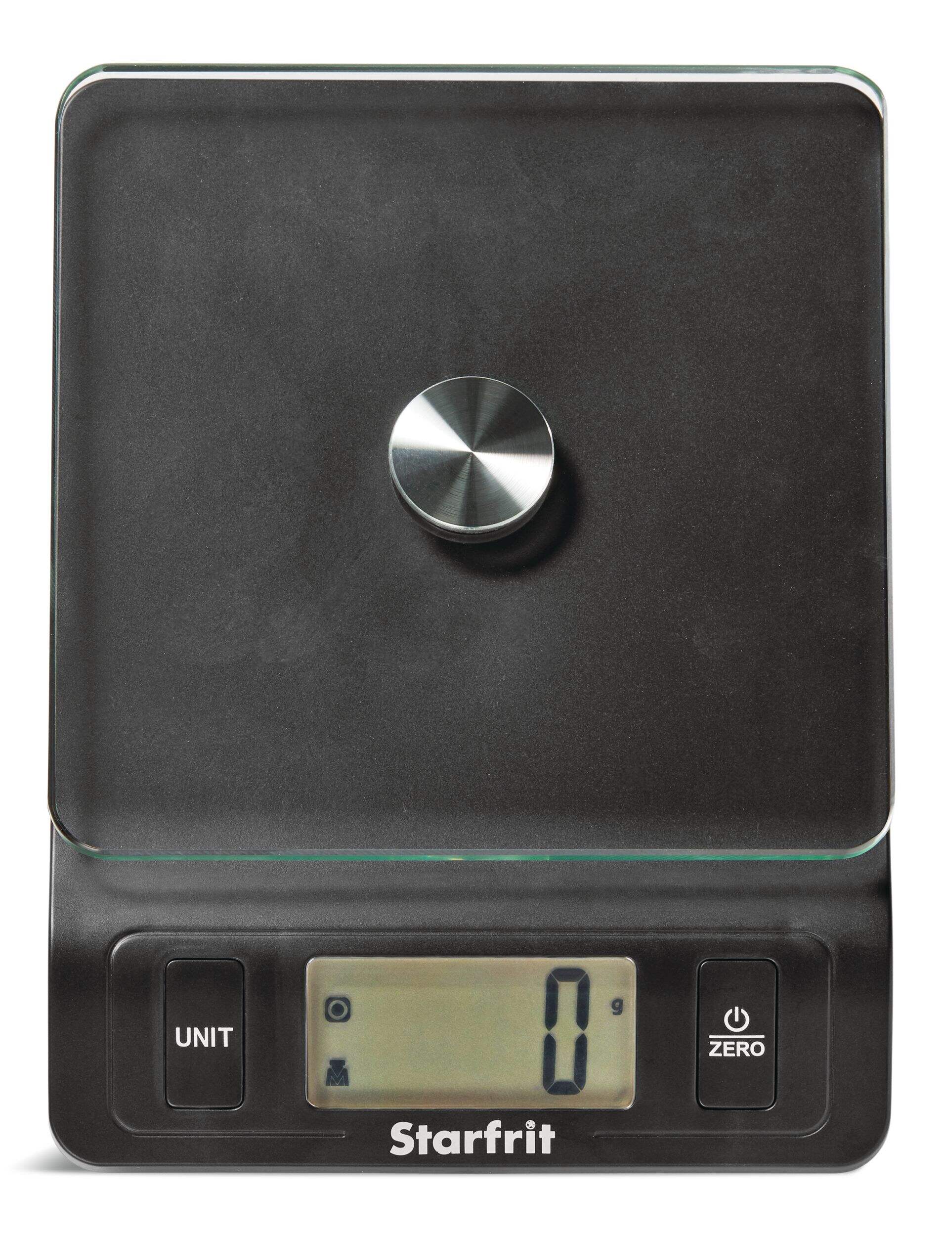 The Starfrit Digital Kitchen Scale features a glass-top weighing platform that is easy to clean, ensuring convenience in your cooking routine. With automatic conversion and a zero button for efficiency, this digital kitchen scale simplifies your measuring process. The automatic shut-off function after two minutes helps conserve battery life. This scale measures both weight and volume, offering units in grams, kilograms, pounds and ounces for mass, and milliliters and ounces for volume.