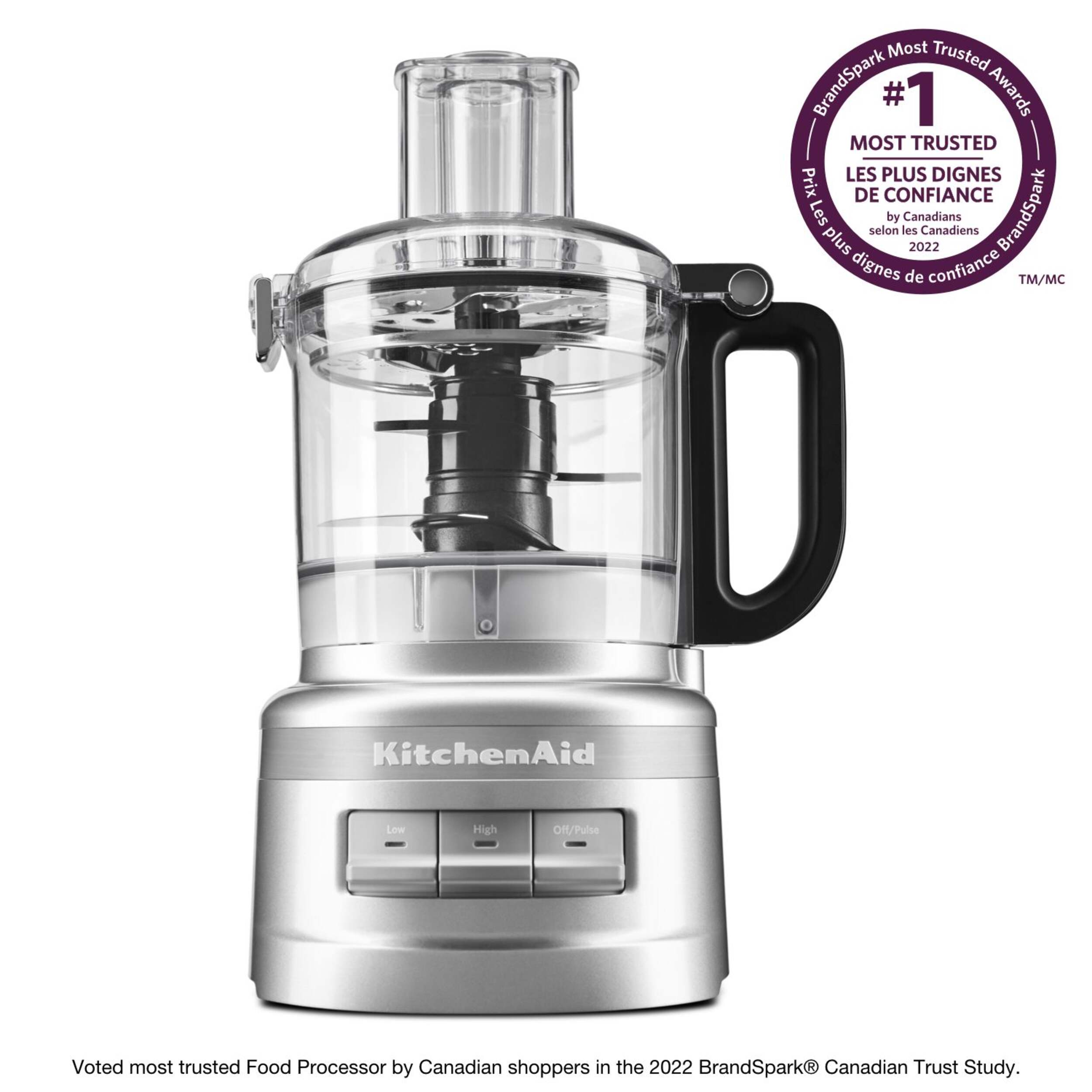 KitchenAid 7-Cup Food Processor Plus features an innovative design with a one-click, twist-free, bowl assembly and latched lid that is very easy to use and clean. Elevate your everyday meals with the 3 speed options and the ability to chop, shred, slice and puree everything from fresh veggies to cheeses, sauces, salsa and so much more.