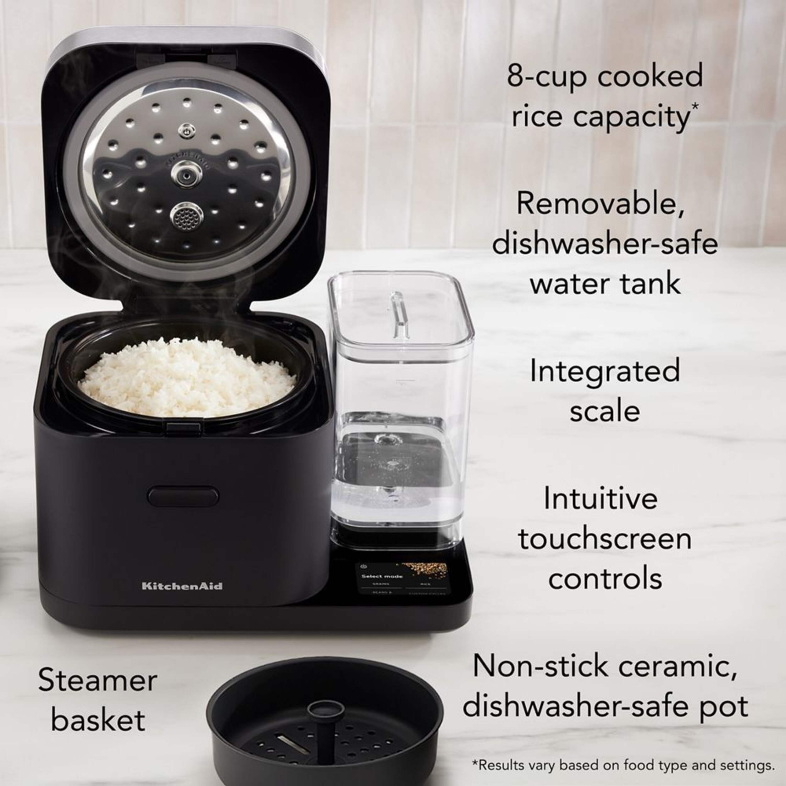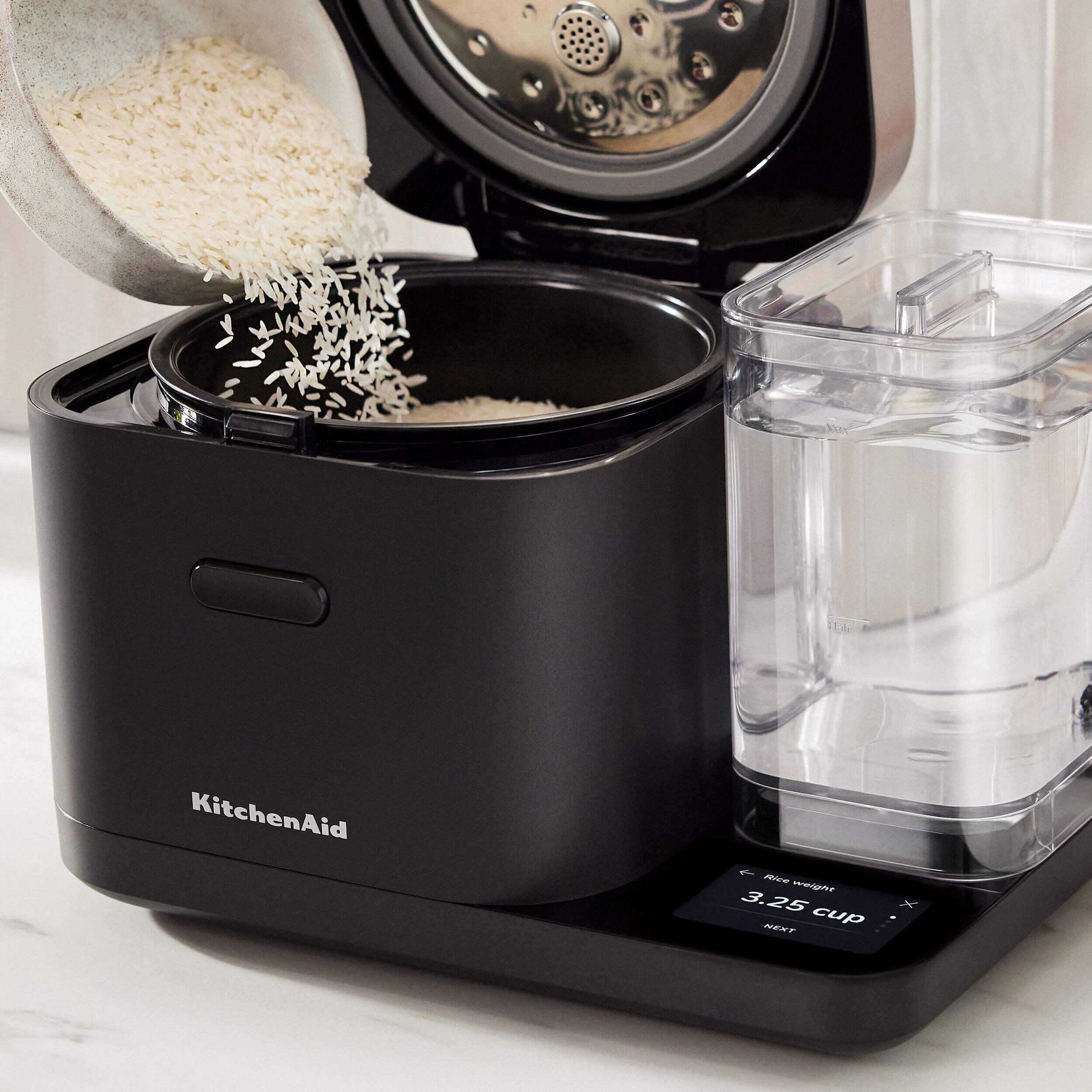 The KitchenAid Fully Automatic Rice Cooker features innovation that takes care of the measuring and monitoring for you, with 21 presets for grains, rice and beans. With an integrated scale and water tank that work together, the cooker automatically senses the amount of grains, rice or beans you've added and then it dispenses the right amount of water to match the ideal water-to-grain ratio for what you are cooking.