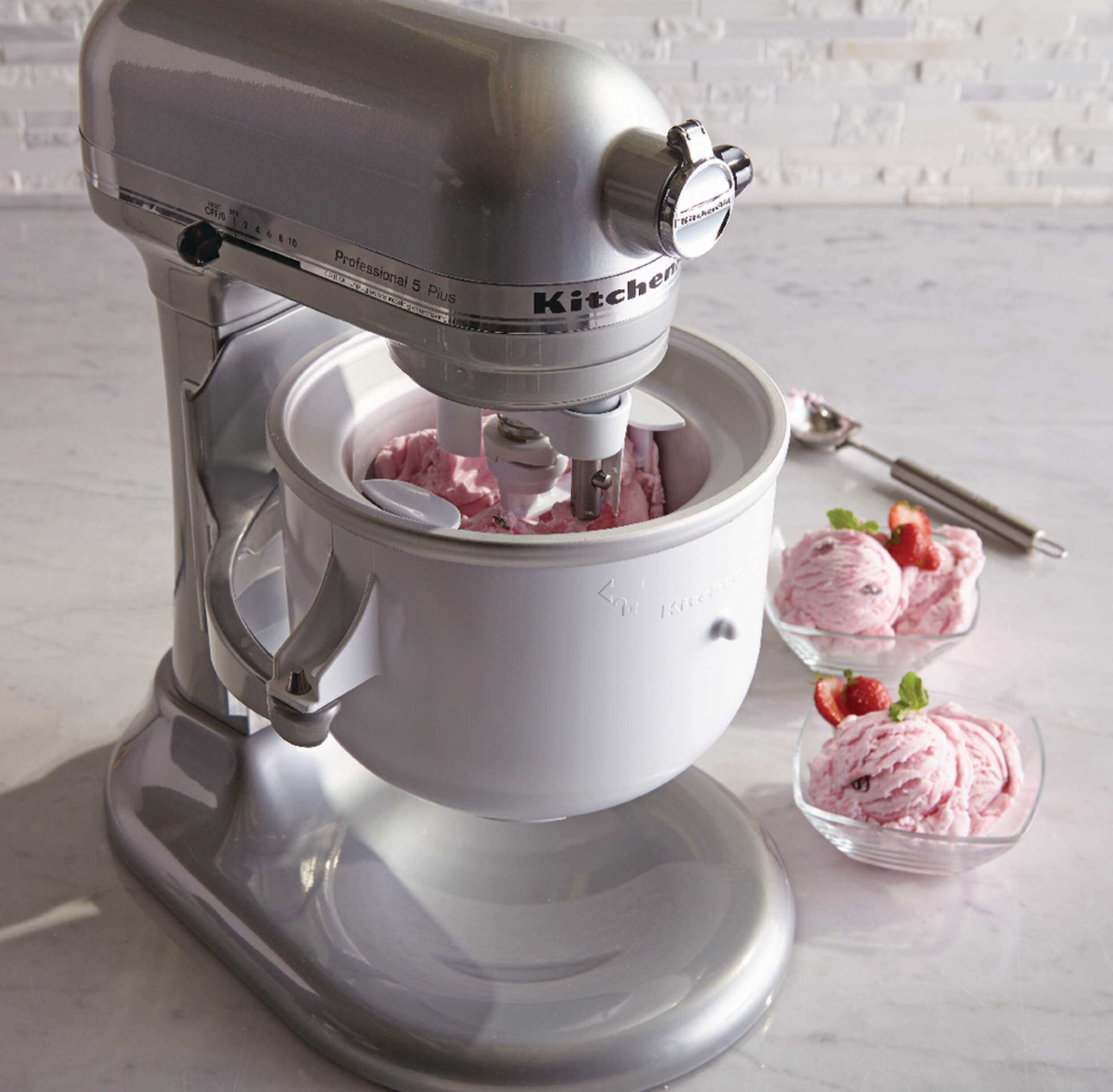 Powered by the stand mixer, churn small batch ice cream, gelato, sorbet, and frozen yogurt with your KitchenAid Stand Mixer.* (*Stand Mixer Sold Separately)