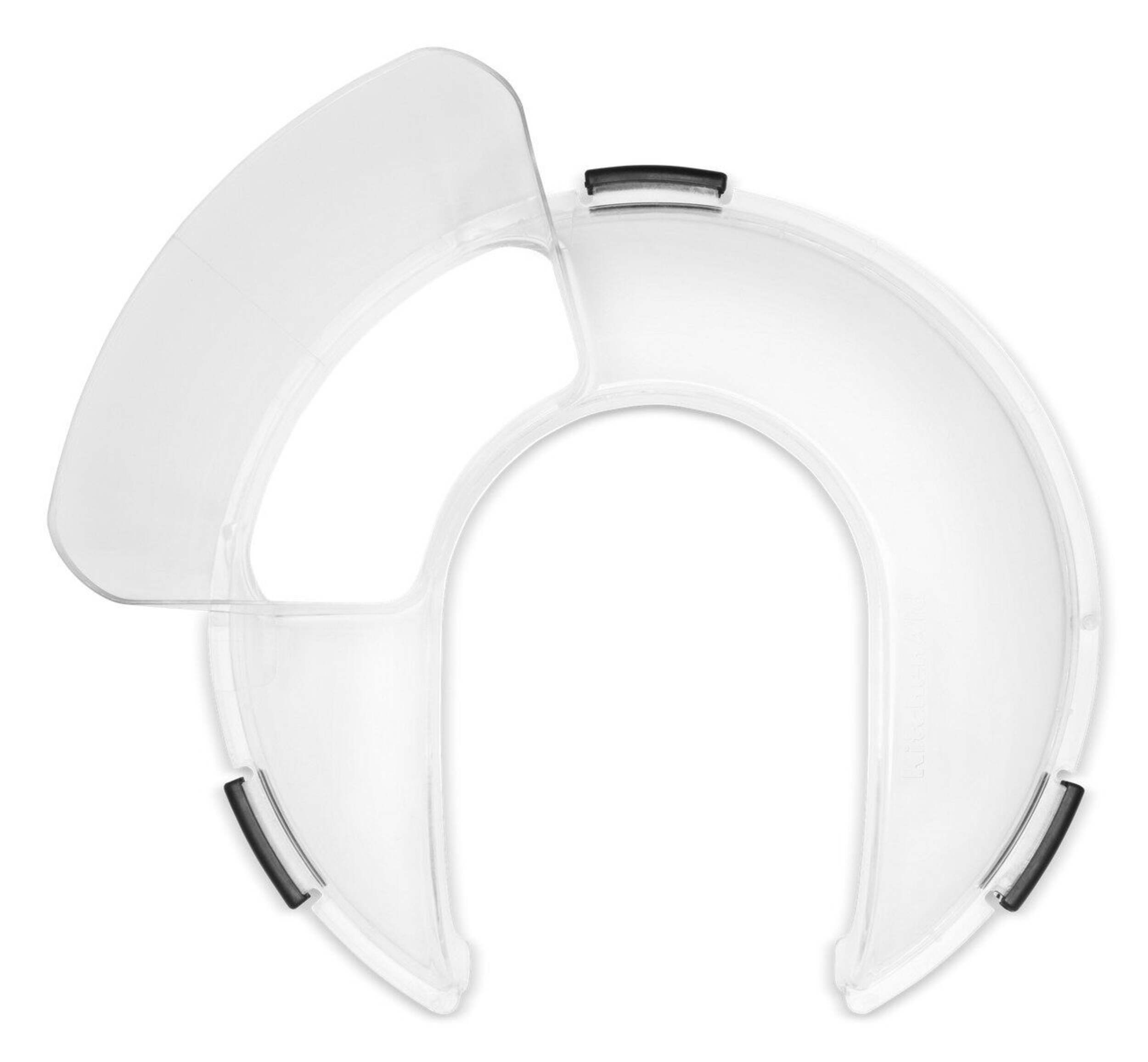 Easy snap tabs securely attach the pouring shield to your mixing bowl