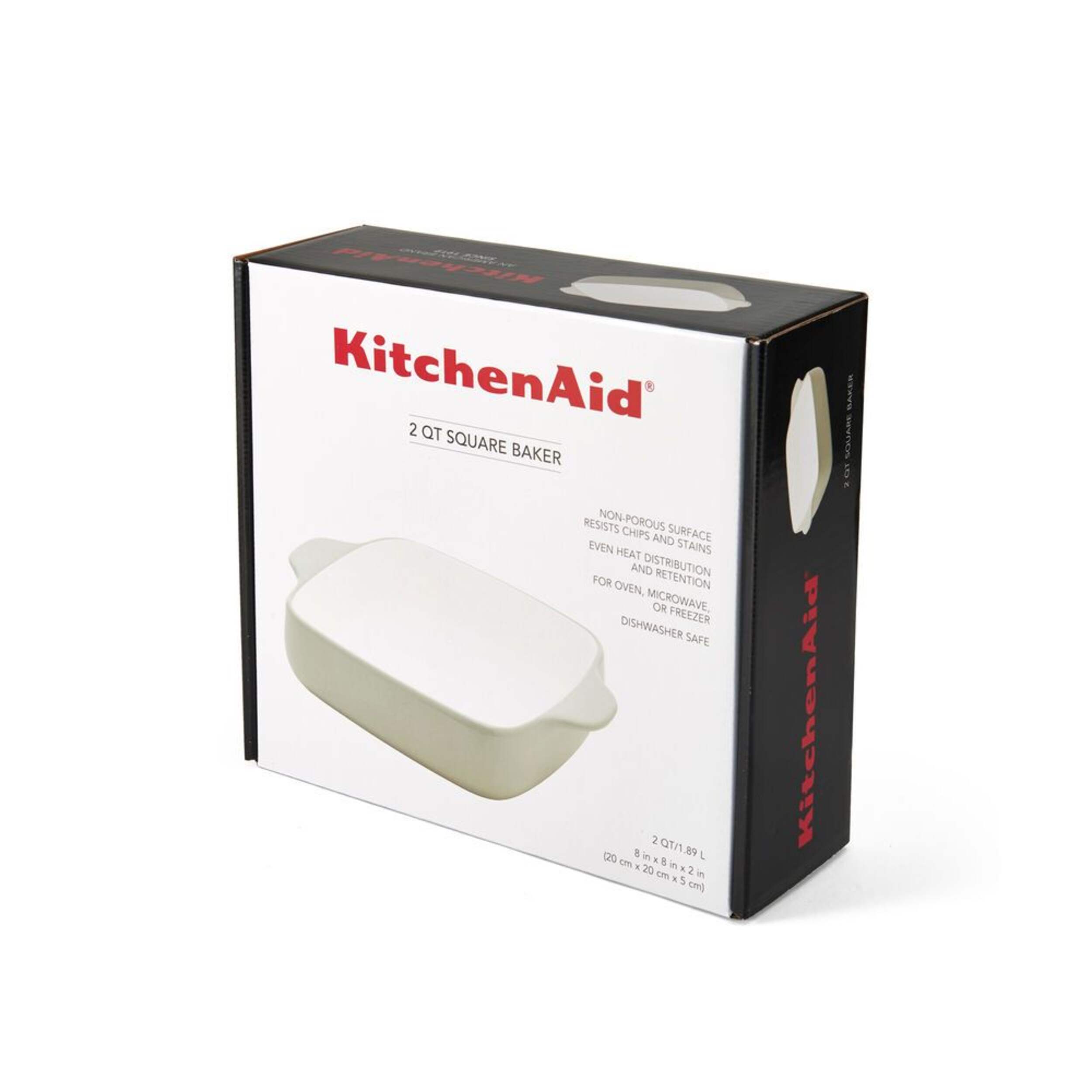 This KitchenAid Square Baking Pan is a kitchen essential. Made from highly durable stoneware, the vitrified construction offers chip and stain resistance. Expect professional results when using this nonporous bakeware, which provides even heat distribution and retention. This versatile, beautiful piece is ideal for both baking, serving, and is safe for oven, freezer, microwave, and dishwasher. 2 quart capacity.