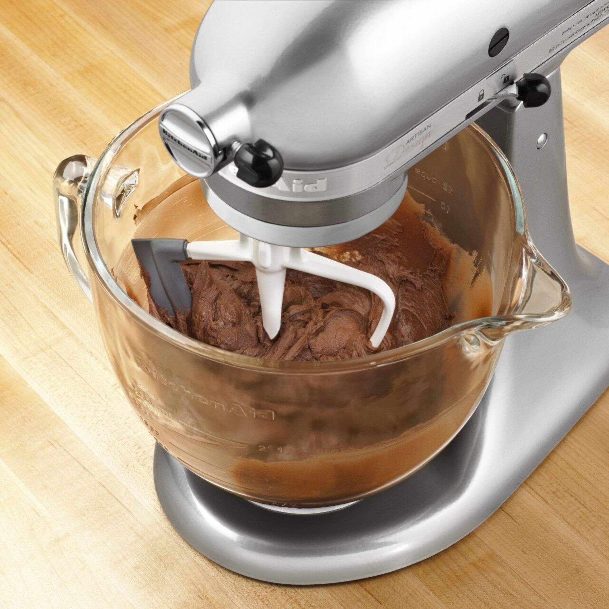 The KitchenAid® Tilt-Head Flex Edge Beater Stand Mixer Attachment is designed to provide thorough and efficient mixing. The flexible edge of the beater scrapes ingredients from the sides of the bowl, supporting a consistent and even mix every time. This attachment is compatible with all KitchenAid® tilt-head stand mixers and is built with durable materials for long-lasting performance. It is also dishwasher-safe for easy cleaning.