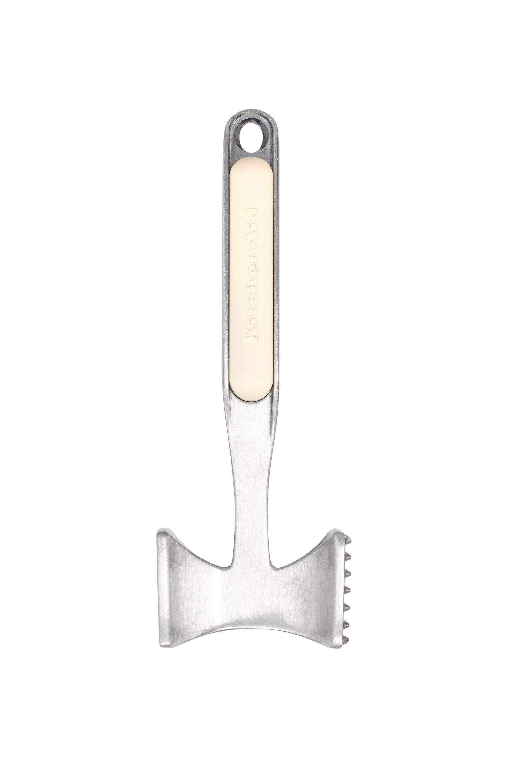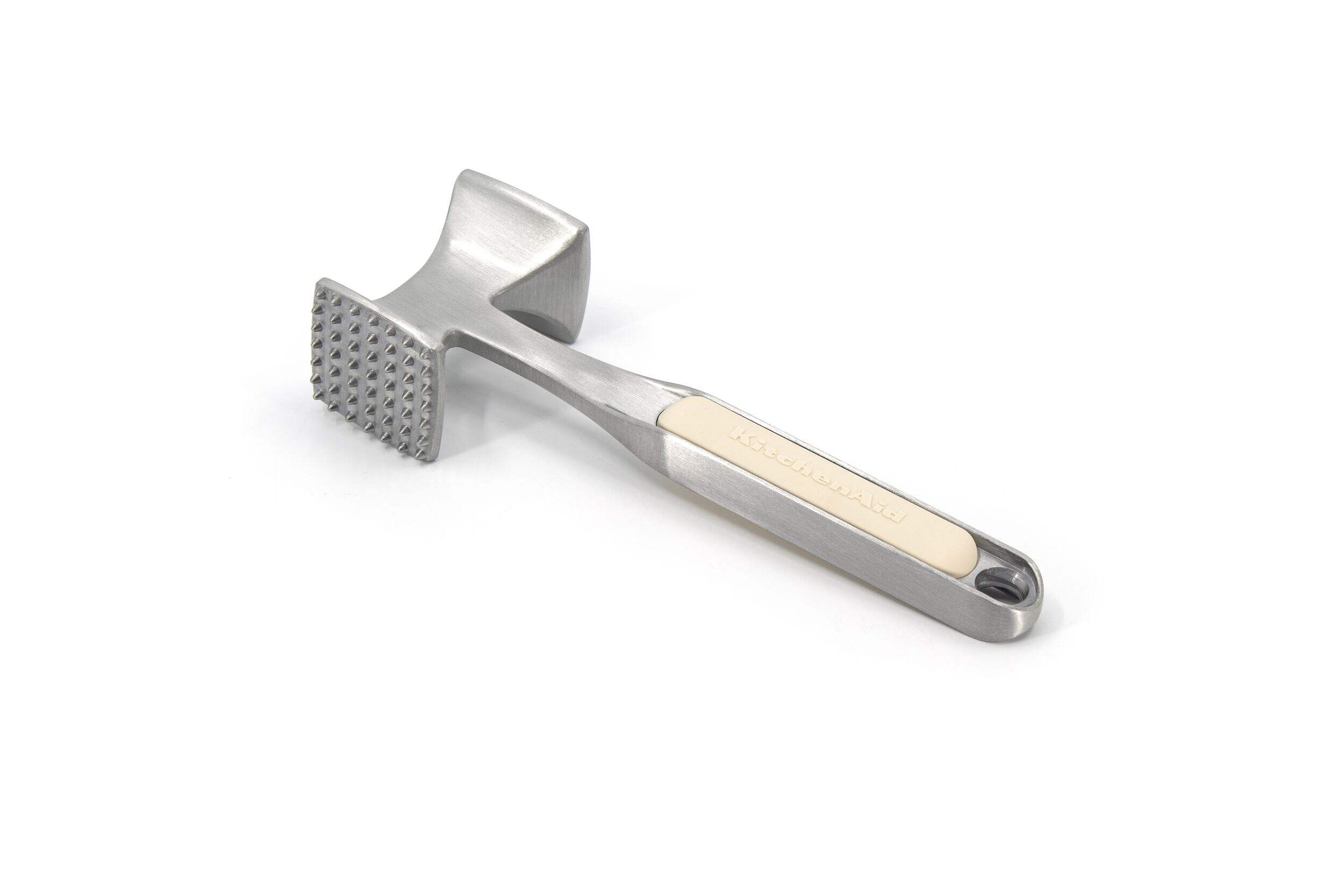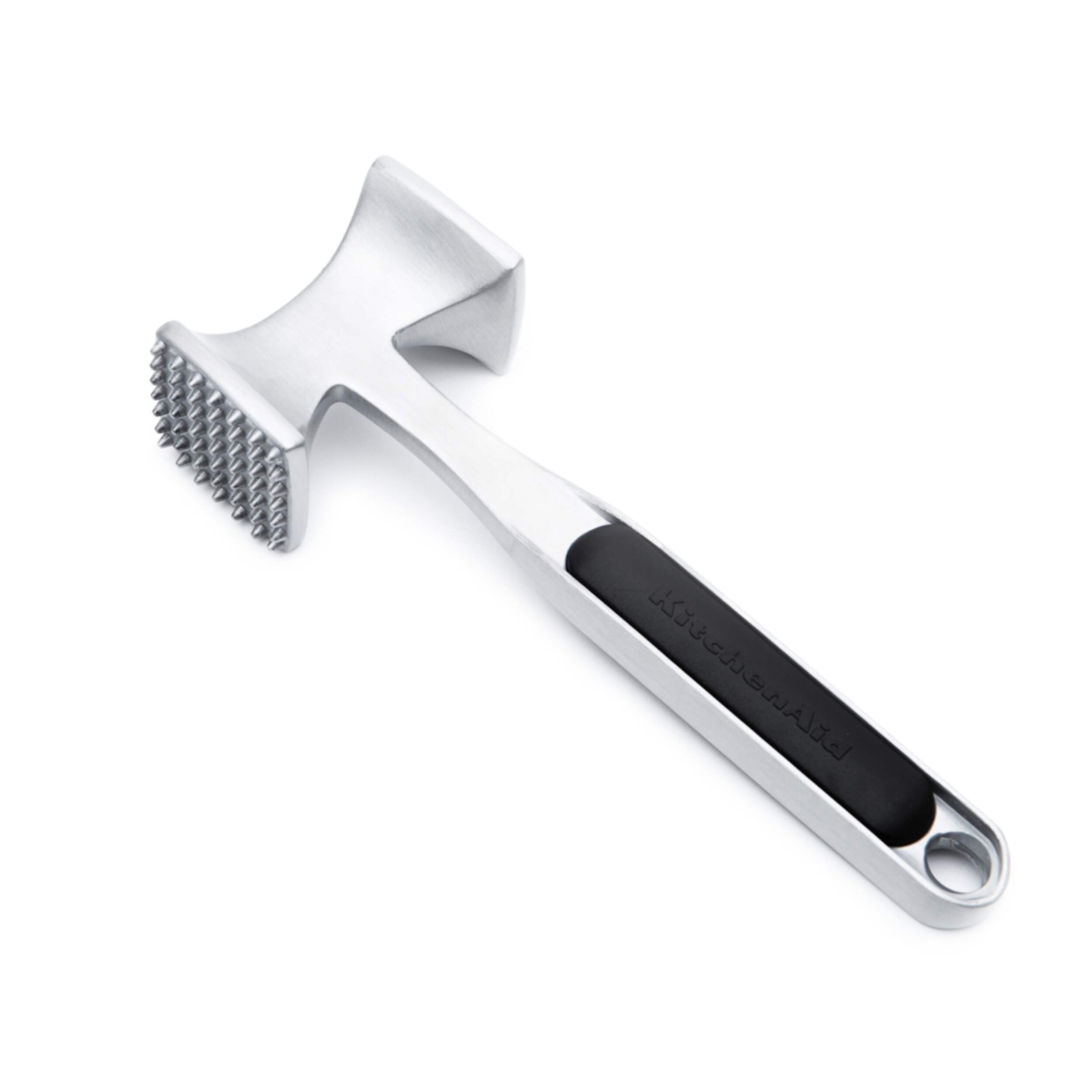The KitchenAid Zinc Alloy Meat Mallet/Tenderizer is an essential tool for any kitchen. Designed with versatility in mind, the mallet comes with an ergonomic handle for a comfortable grip, ensuring precise control during usage. Not just for meat, this tool is also ideal for cracking shellfish, smashing nuts, and even crushing hard candy. It also includes a convenient hanging hole for simple and easy storage.