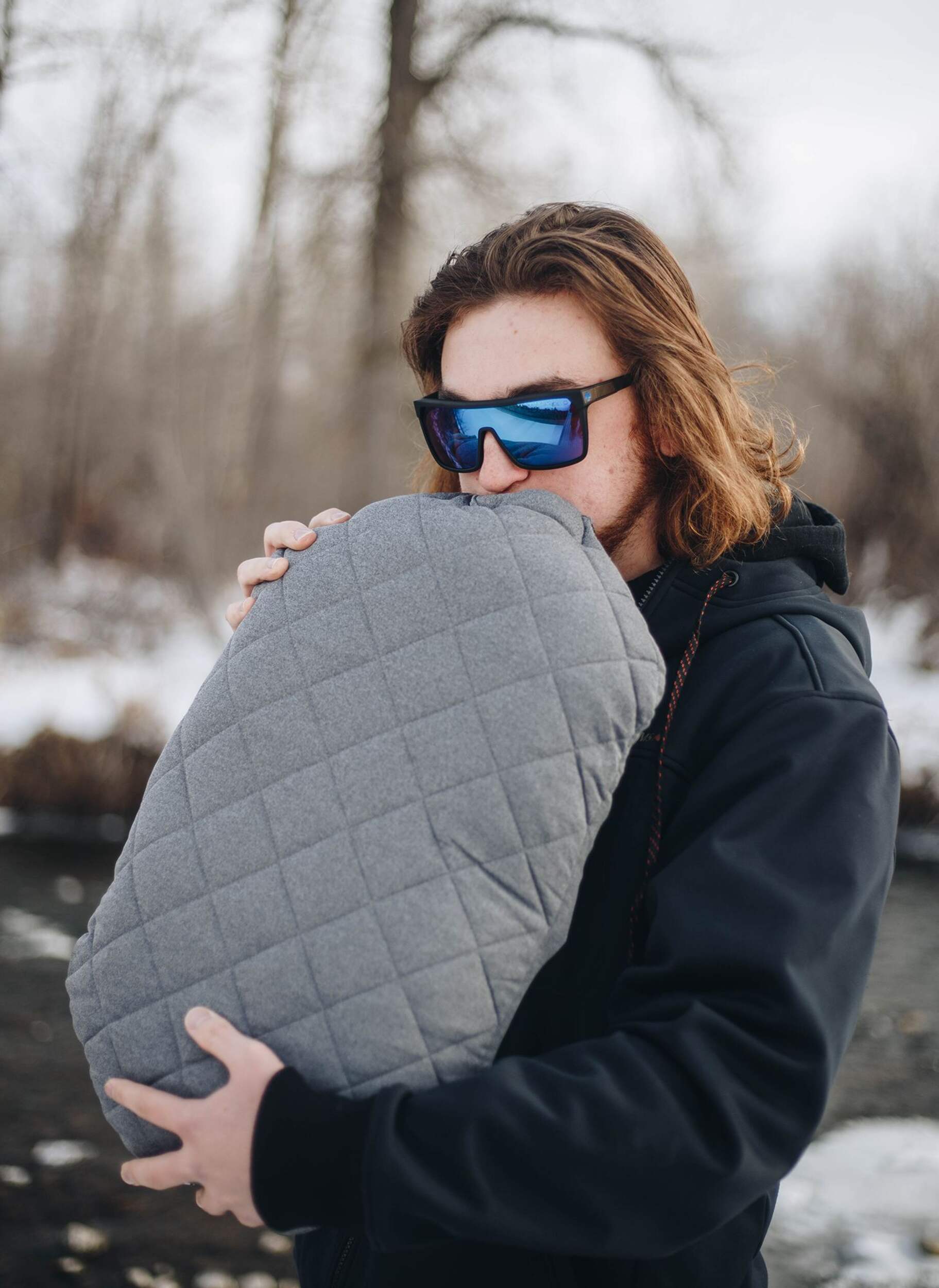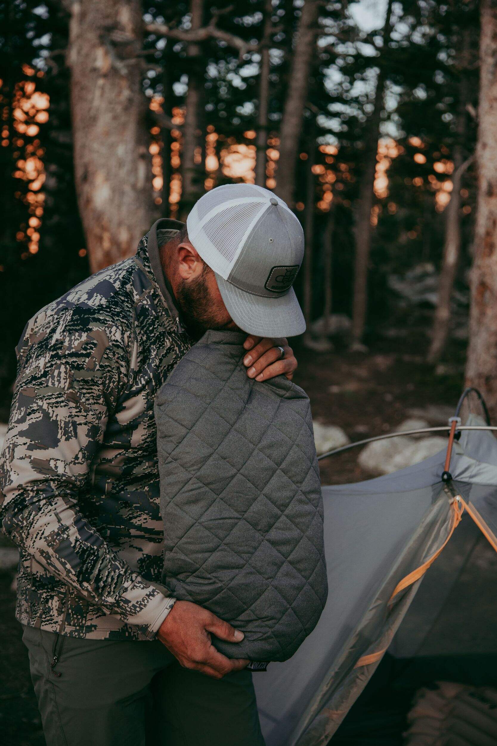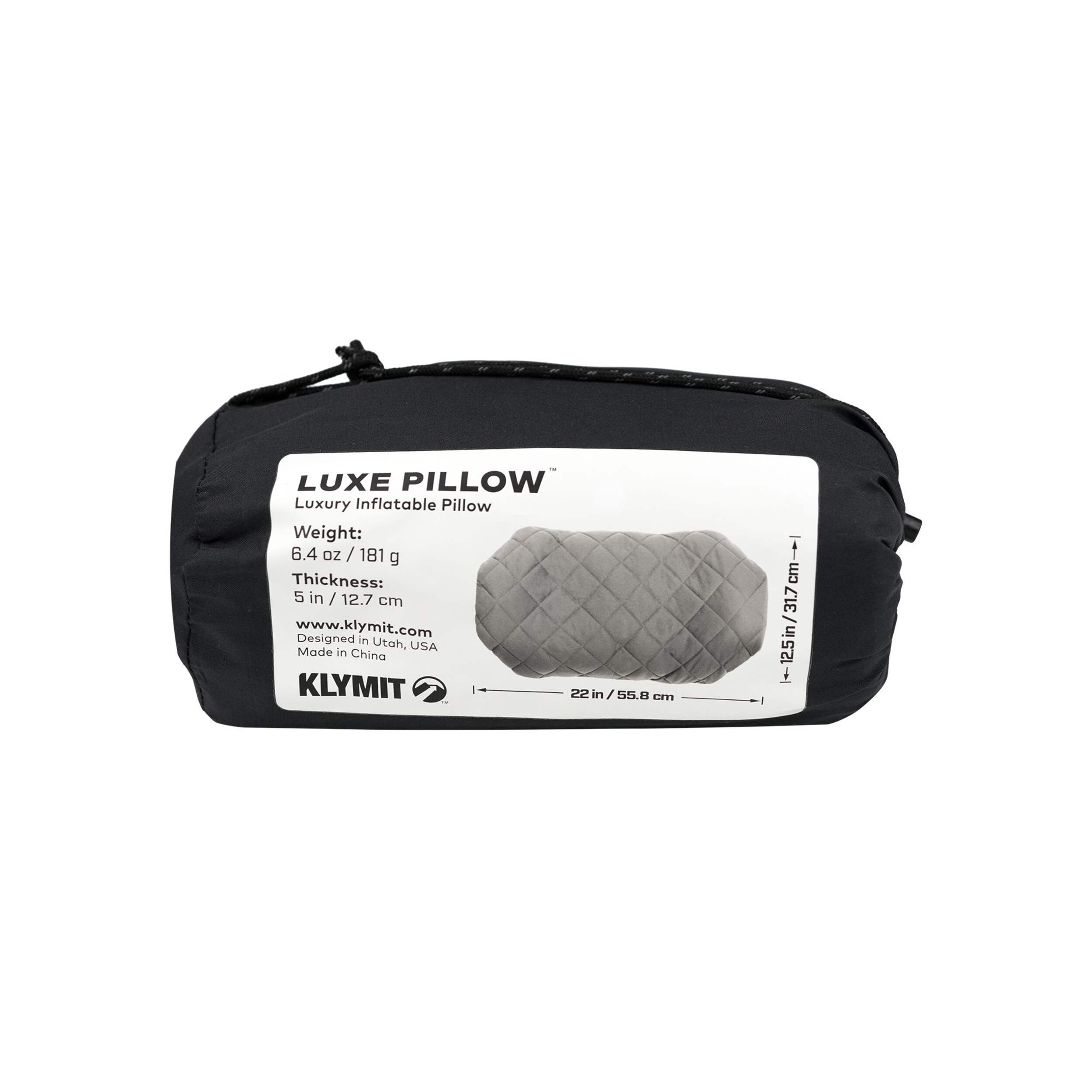 The Klymit Luxe Pillow combines a plush topper with air inflation for the perfect combination for BIG COMFORT. The Hybrid-fill design combines the cushioning of air with the lofty support of polyester fill to maximize comfort.CRADLES YOUR HEAD for supportive, stable sleeping, and the soft outer material delivers all night comfort. PERFECT FOR traveling, casual camping, and light enough for backpackers craving extra comfort. ALMOST AS BIG AS your PILLOW AT HOME, this pillow packs surprisingly small (3" x 7") for something so luxurious