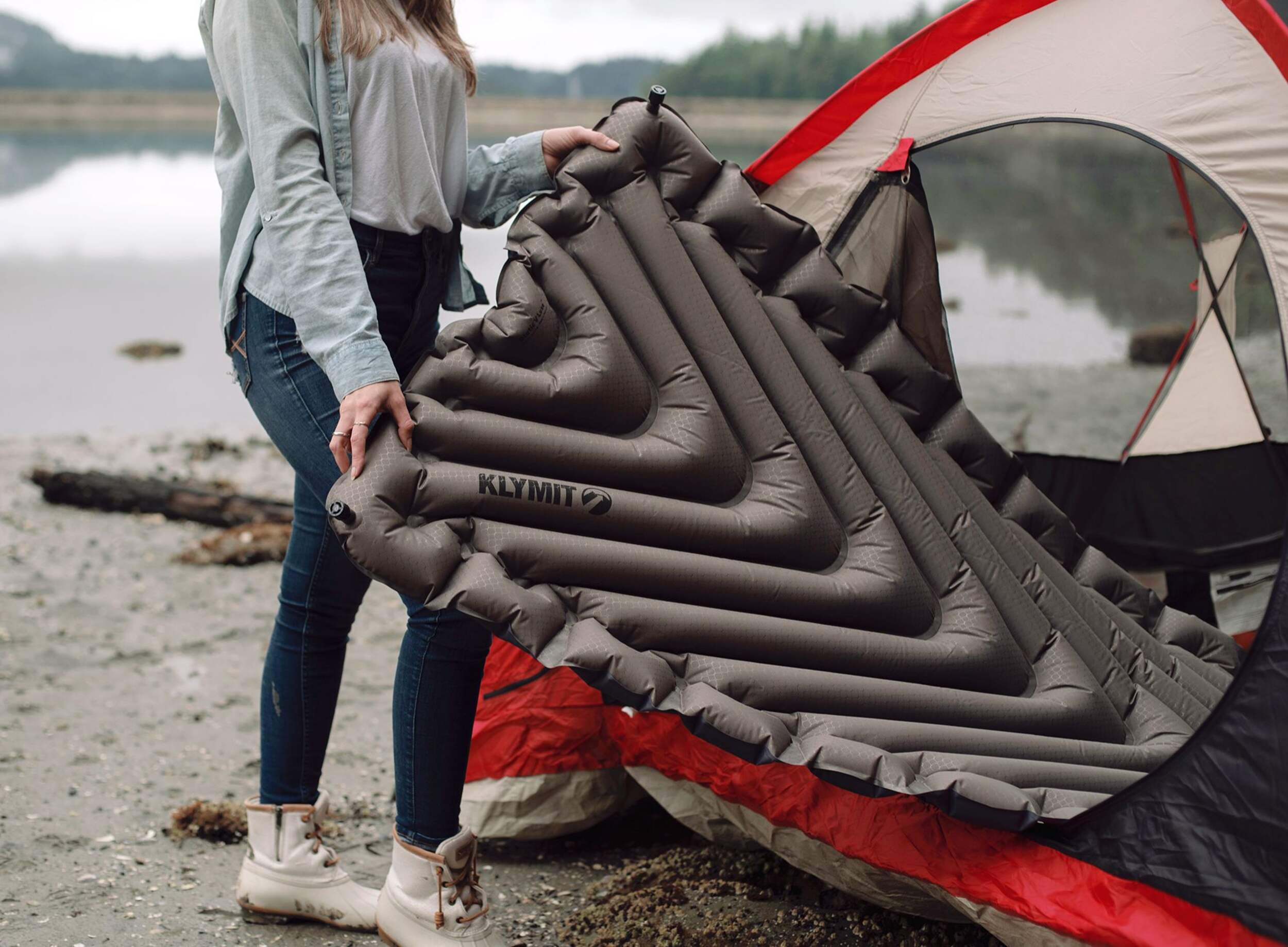 Klymit Static V Luxe Lightweight Inflatable & Compressible Sleeping Pad, Stone Grey