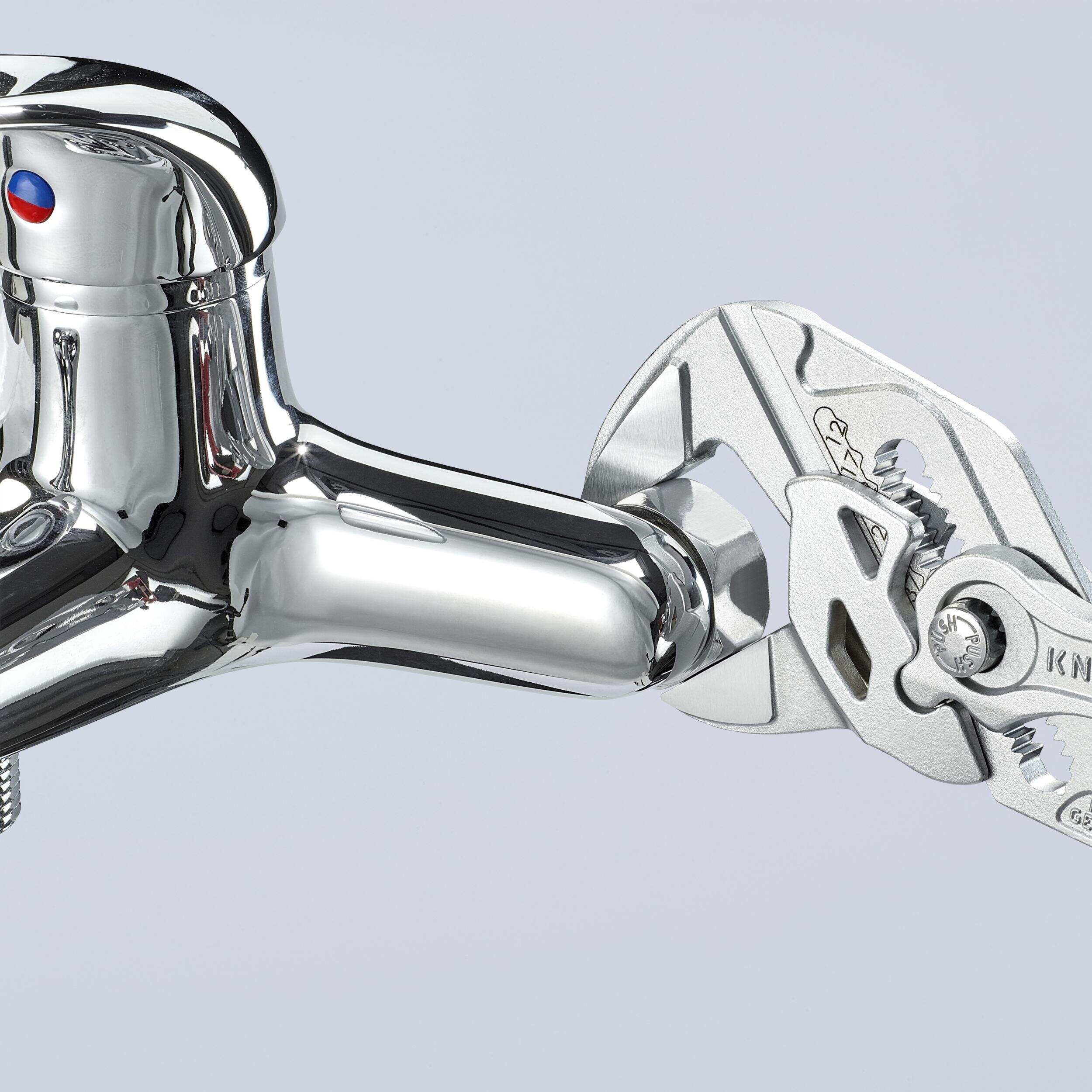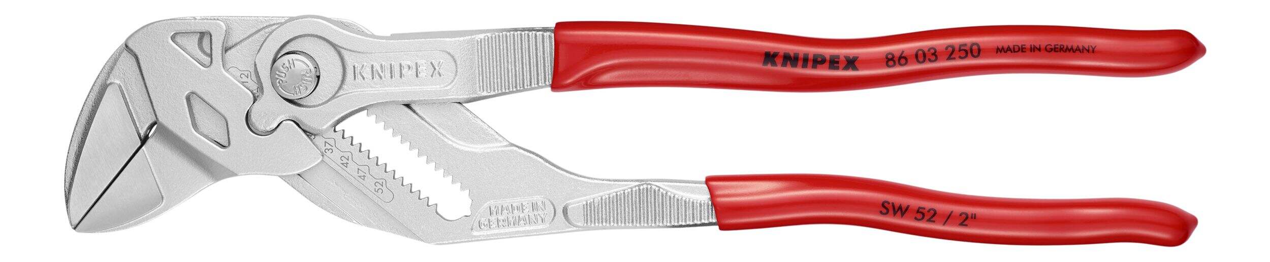 The KNIPEX 86 03 250 SB Pliers Wrench combines the functionality of pliers and a wrench into a single, versatile tool. Ideal for tasks requiring precision and strength, its slim design allows access to tight spaces, making it invaluable in professional and DIY applications. Crafted from durable chrome vanadium steel, this wrench ensures reliable performance for demanding jobs. Its ergonomic handle reduces hand fatigue during prolonged use, while the innovative mechanism offers smooth operation for fastening and adjusting tasks.