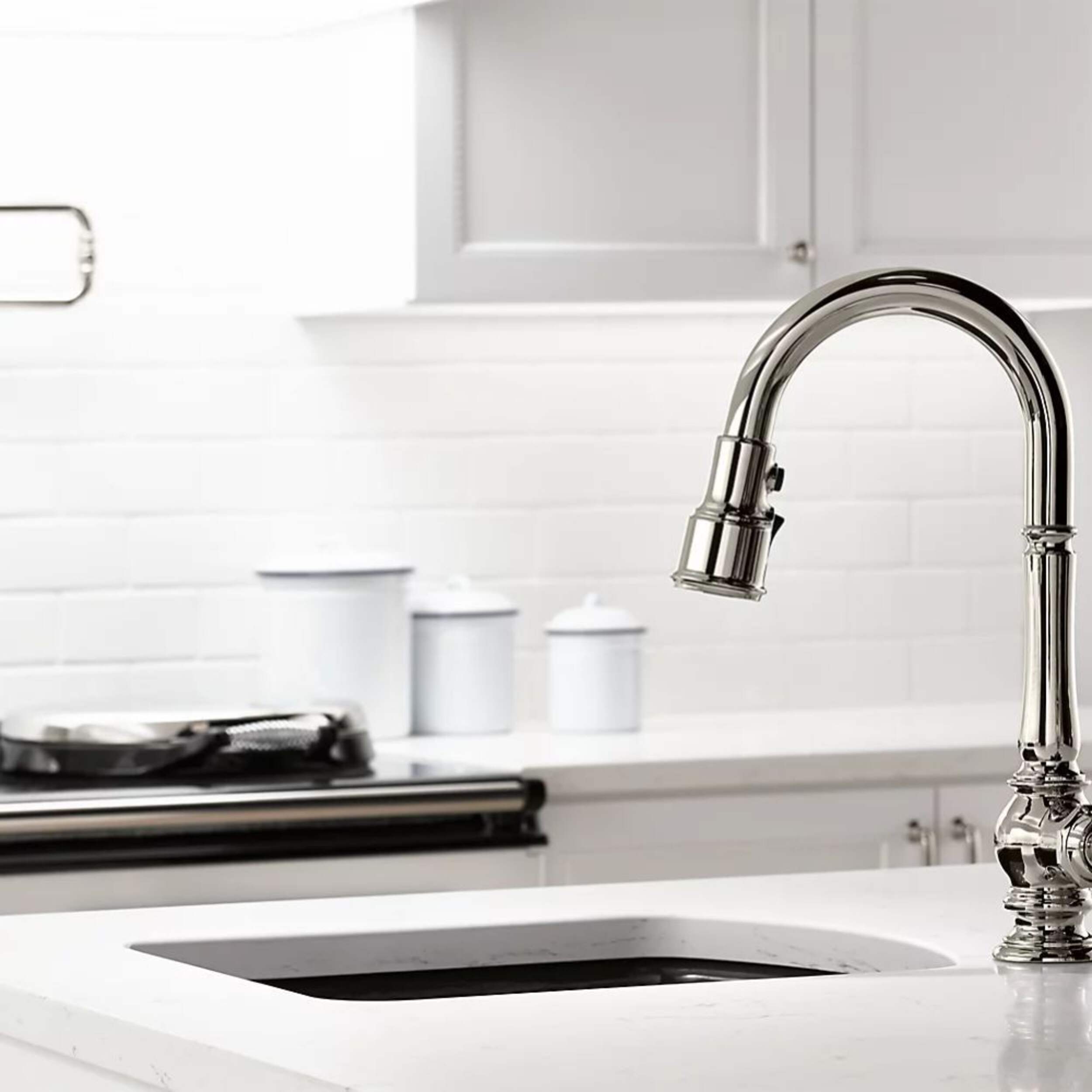 Kohler Artifacts Kitchen Faucet provides a timeless piece that pairs perfectly in a variety of kitchen decors