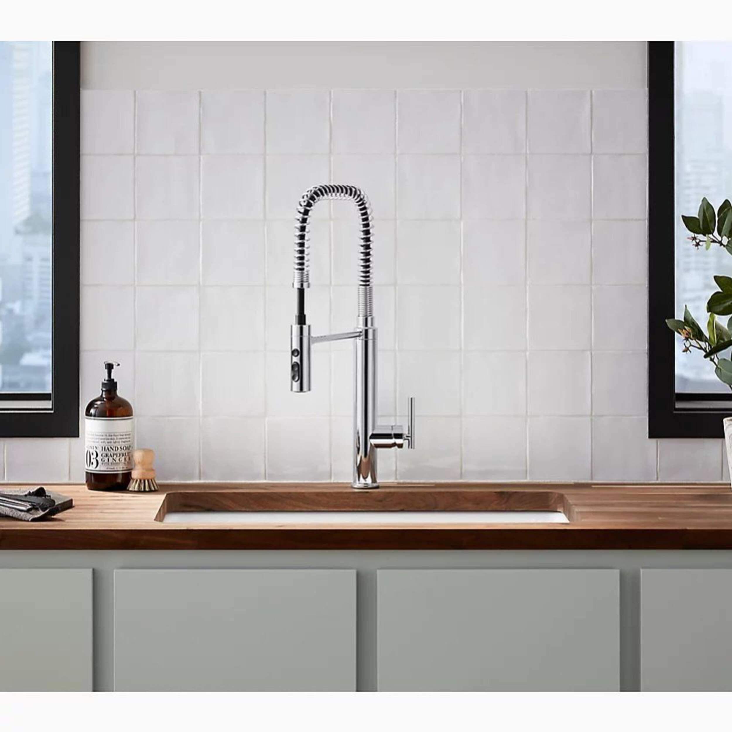 Kohler Purist Semi-Professional Kitchen Faucet features a unique three-function spray head with Sweep® spray, Boost technology and aerated stream to complete tasks more efficiently