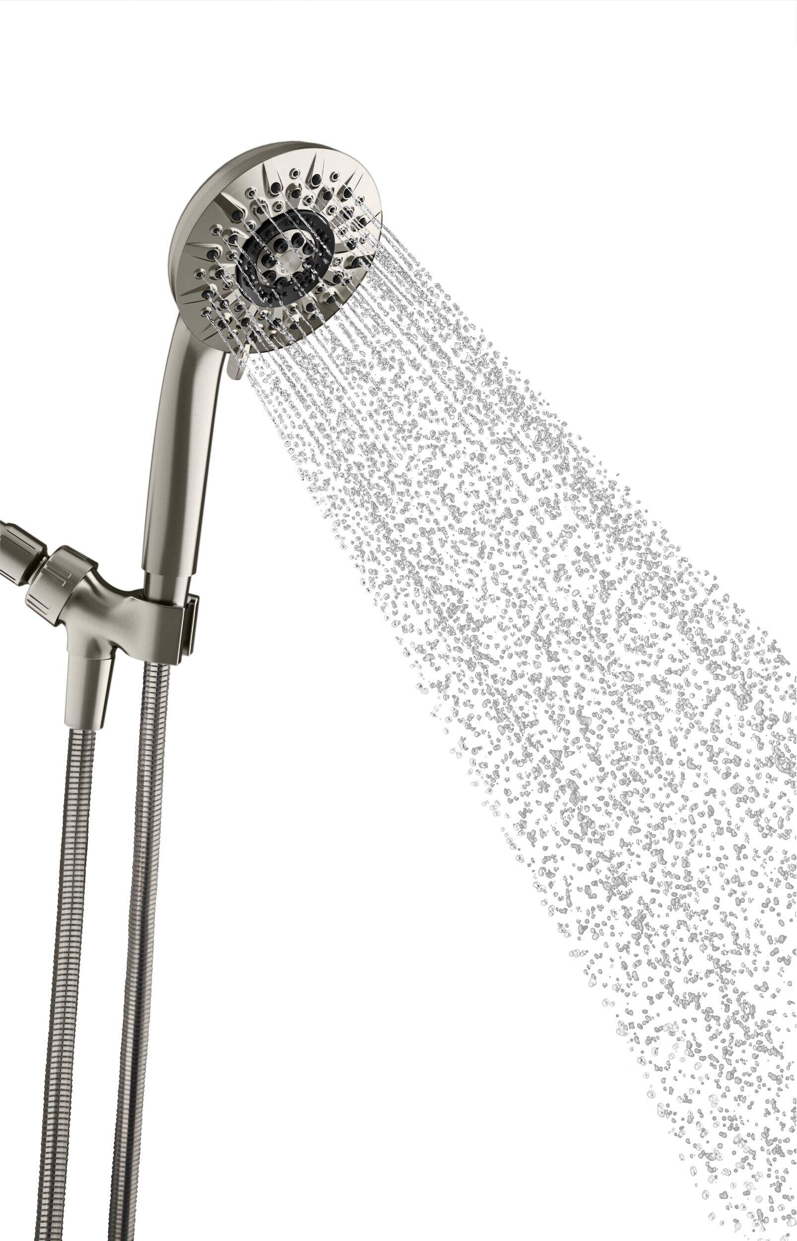 The Radiate handshower delivers five luxurious experiences that will immediately upgrade your shower. Select from five different sprays with a simple rotation of the thumb tab - full coverage, intense rinse, powerful massage, or two combination sprays that allow you to enjoy multiple settings at once. Radiate's sleek design brings a stylish accent to the contemporary and classic bathroom. This self-sealing handshower offers fast, easy installation, with no tools or tape required.