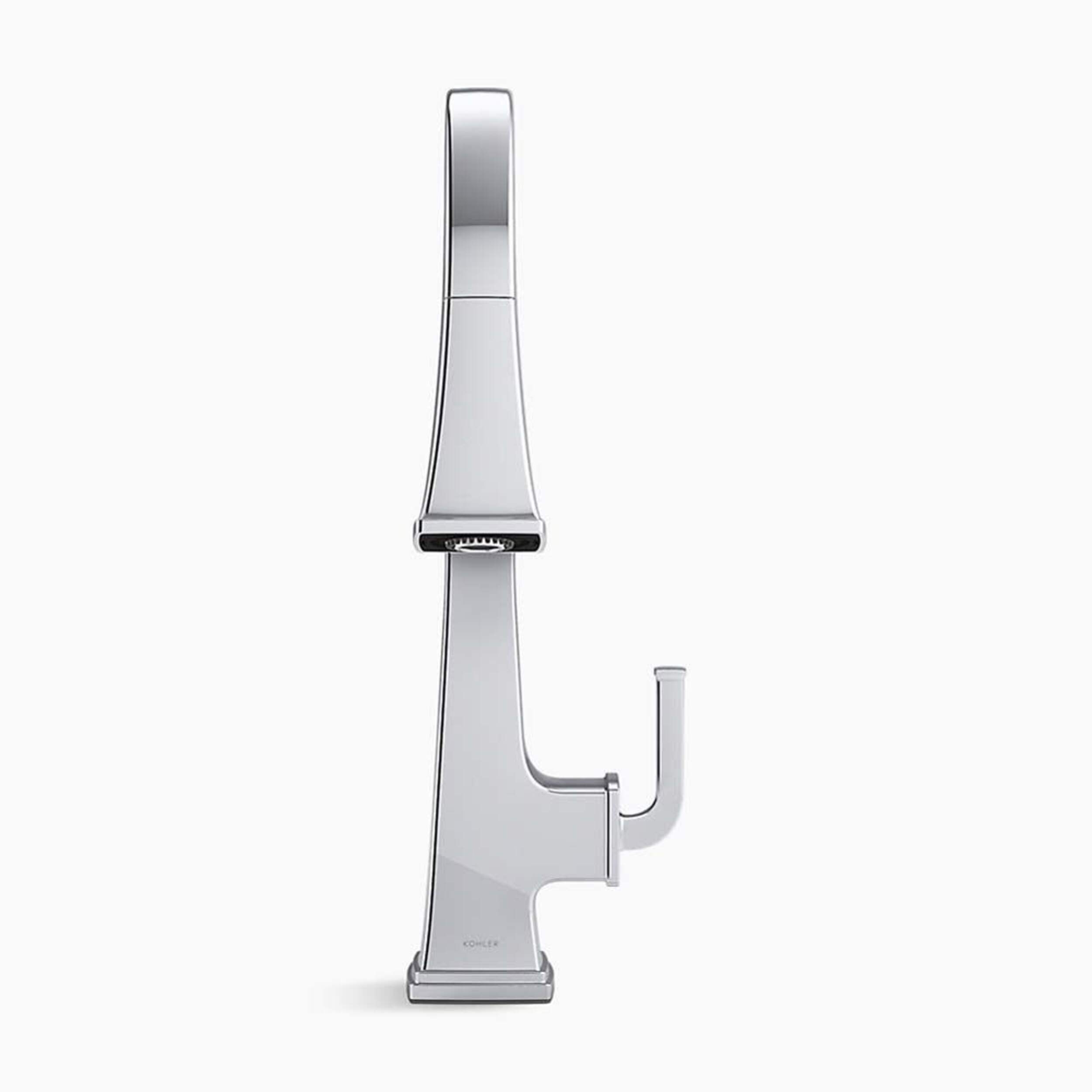 Kohler Riff Pull-Down 1-Handle Kitchen Faucet utilizes a high-arch swing spout for vertical clearance on tall cookware and pitchers