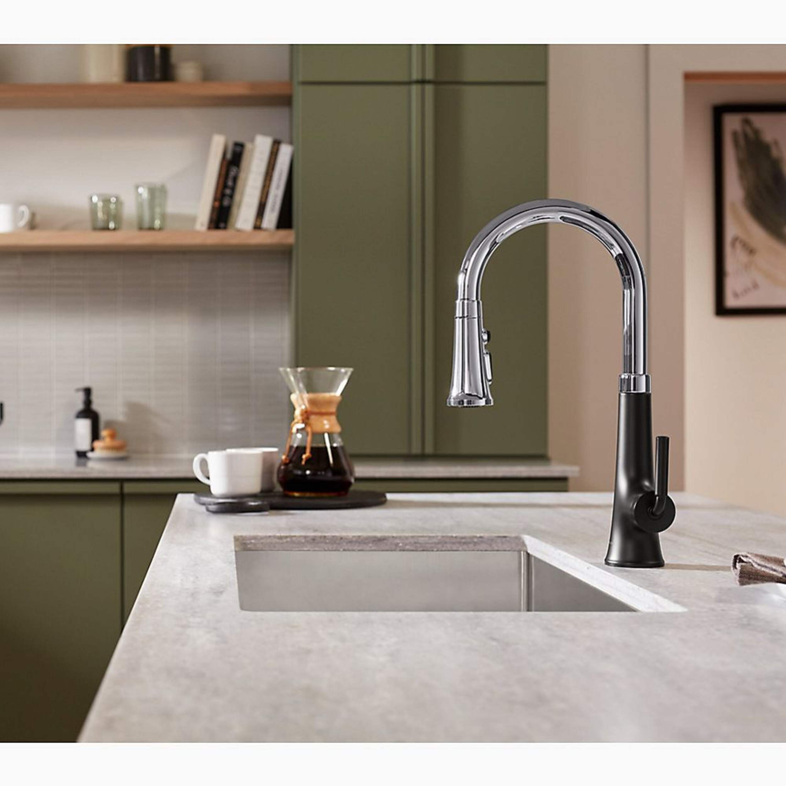 Kohler Tone™ Pull Down Single Handle Kitchen Sink Faucet, Polished Chrome/Matte Black