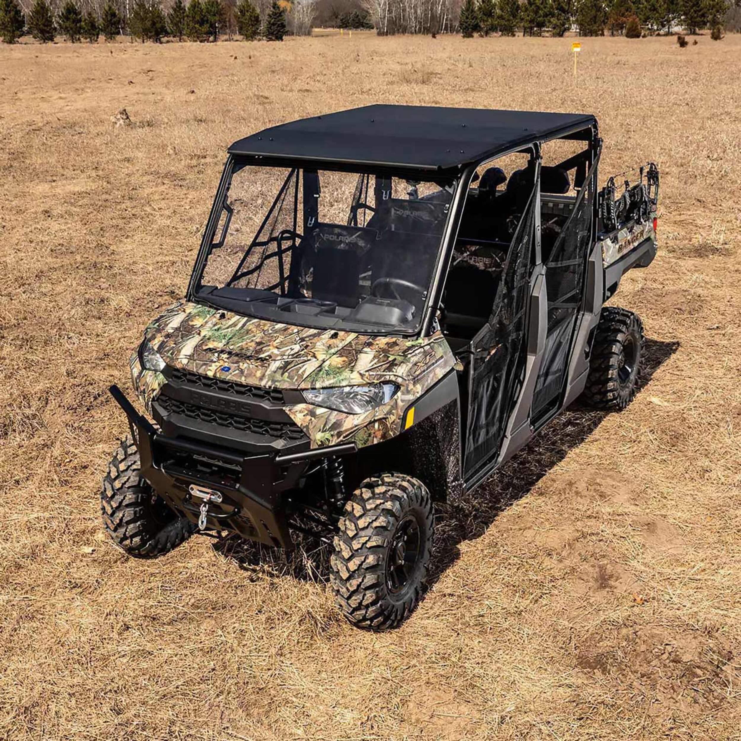 Heavy-duty 14-gauge thick steel roof for Polaris Ranger Crew UTVs. Quick and easy installation and compatible with Kolpin Glass Windshields and select back panels.